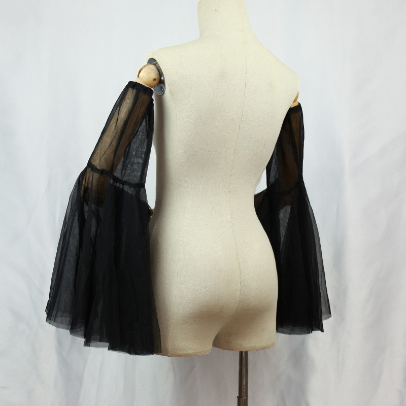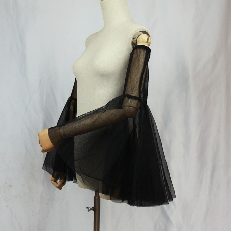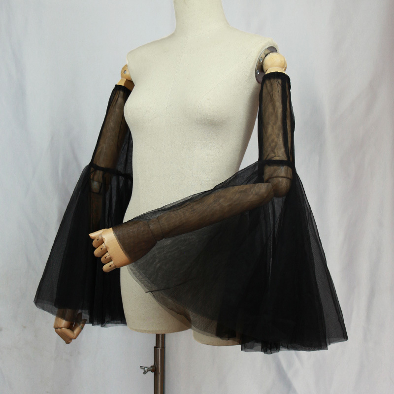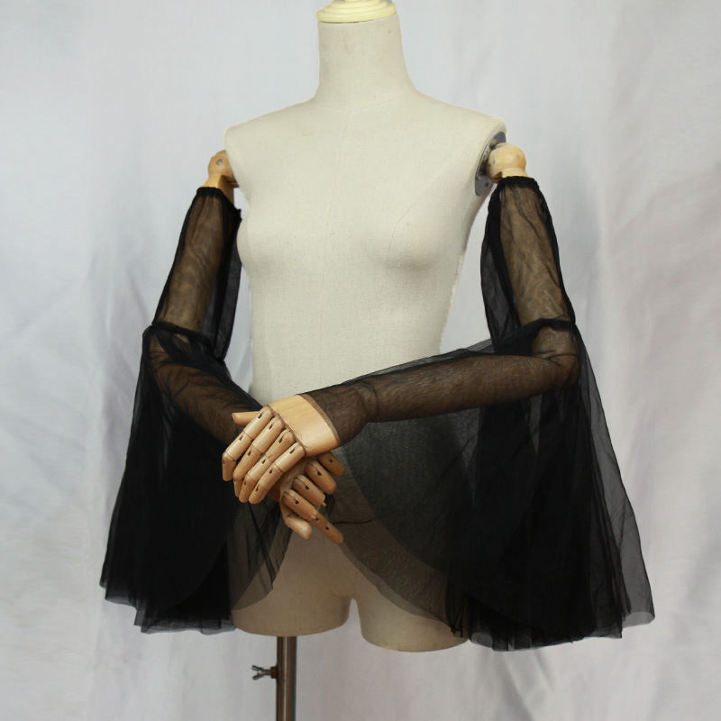 双层喇叭袖荷叶边婚纱袖套假袖子配饰遮大臂神器新娘礼服黑色袖套