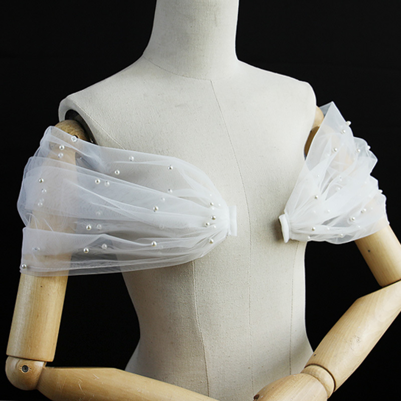 パールメッシュホワイトアイボリースリーブ薄い単層ブライダルアームカバーウェディングドレスアウターショルダースリーブアクセサリー