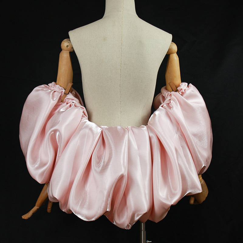 粉色月光缎面一字肩披肩婚纱走秀舞台晚礼服摄影造型轻奢高级丝巾