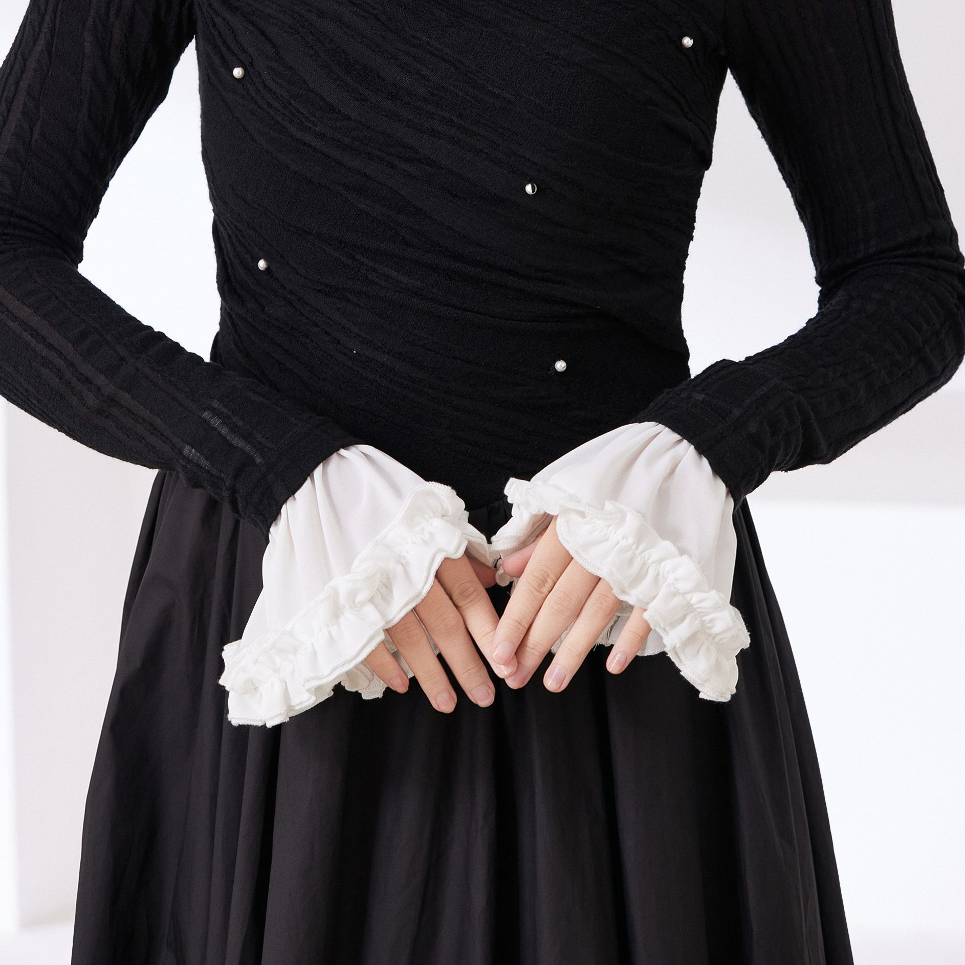 百褶荷叶边假袖子木耳边衬衫袖内搭配饰手套喇叭袖白色短接假袖口
