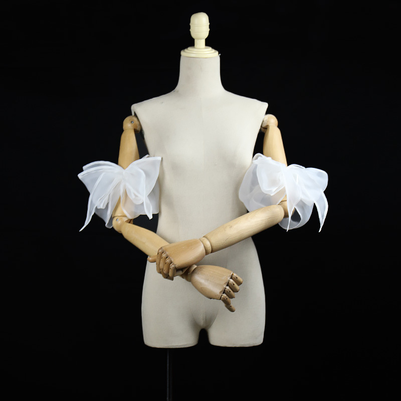 新娘礼服抹胸遮手臂欧根纱蝴蝶结装饰袖子遮挡肉肉配饰袖套泡泡袖