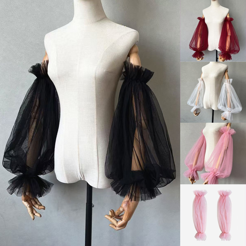 批发婚纱礼服手套袖子百褶长网纱造型森系摄影 影楼写真服饰拍照