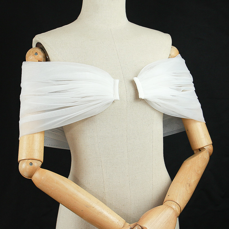 花嫁のウェディングドレスクラウドワンショルダーショールカバーアームバブルスリーブホワイトメッシュステージキャットウォークアクセサリー