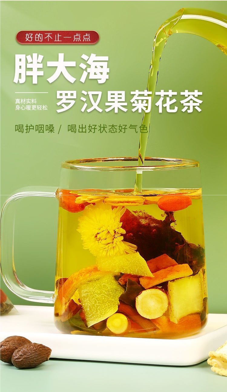 羅漢果菊茶、びわの葉、甘草、雪梨、タンポポ、清潤健康茶、独立ティーバッグ
