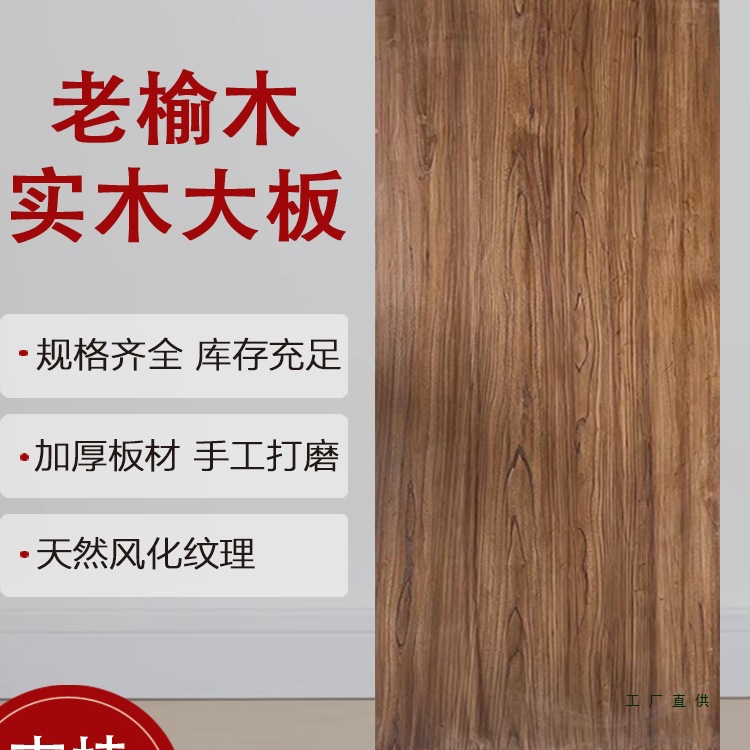 老榆木板原木桌面定 制大板复古板材置物架办公桌吧台板子实木桌