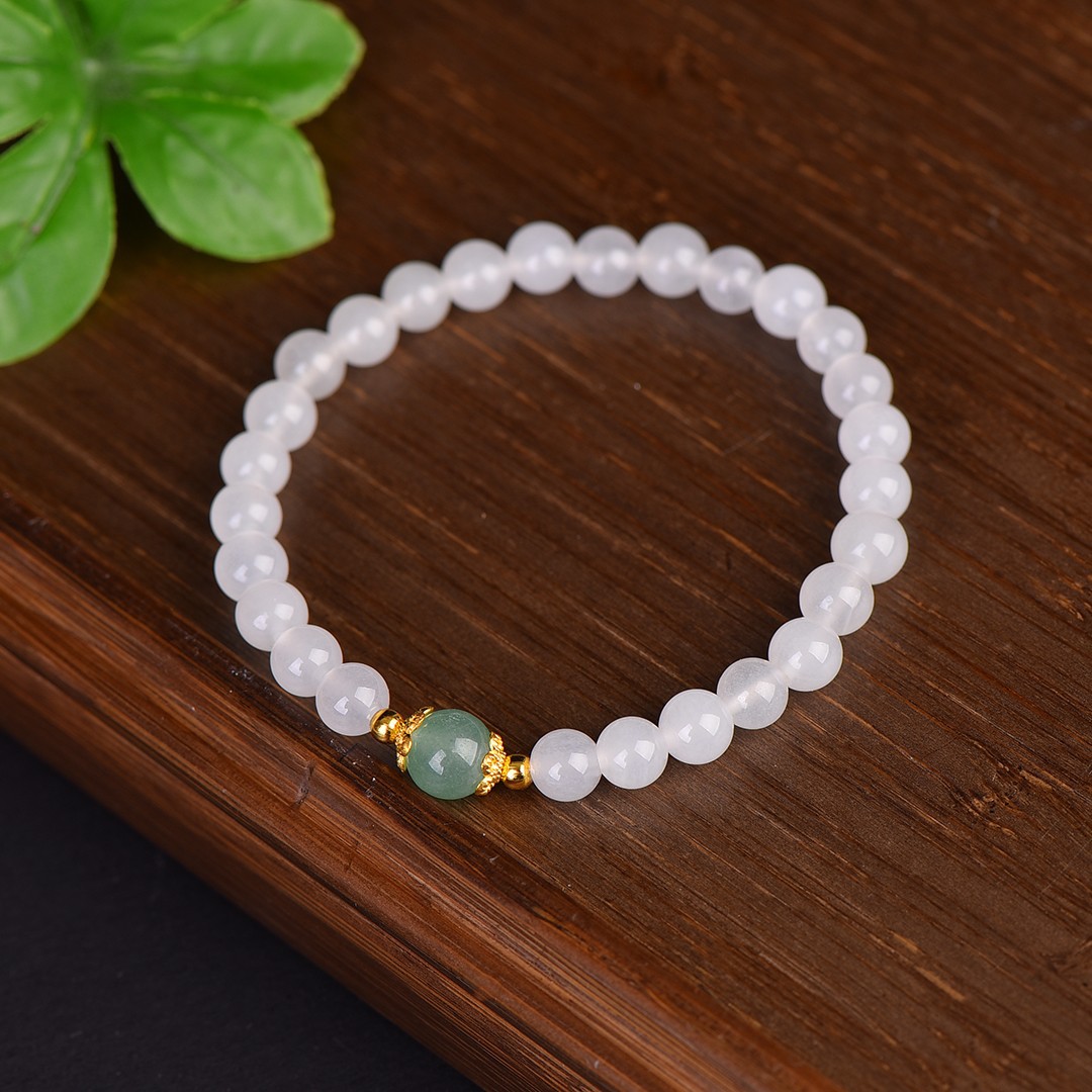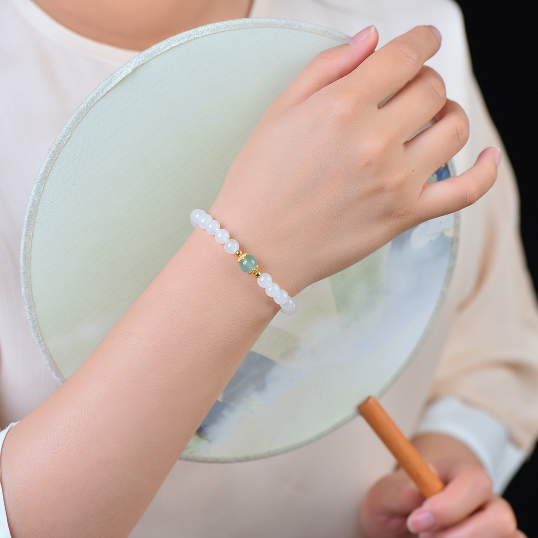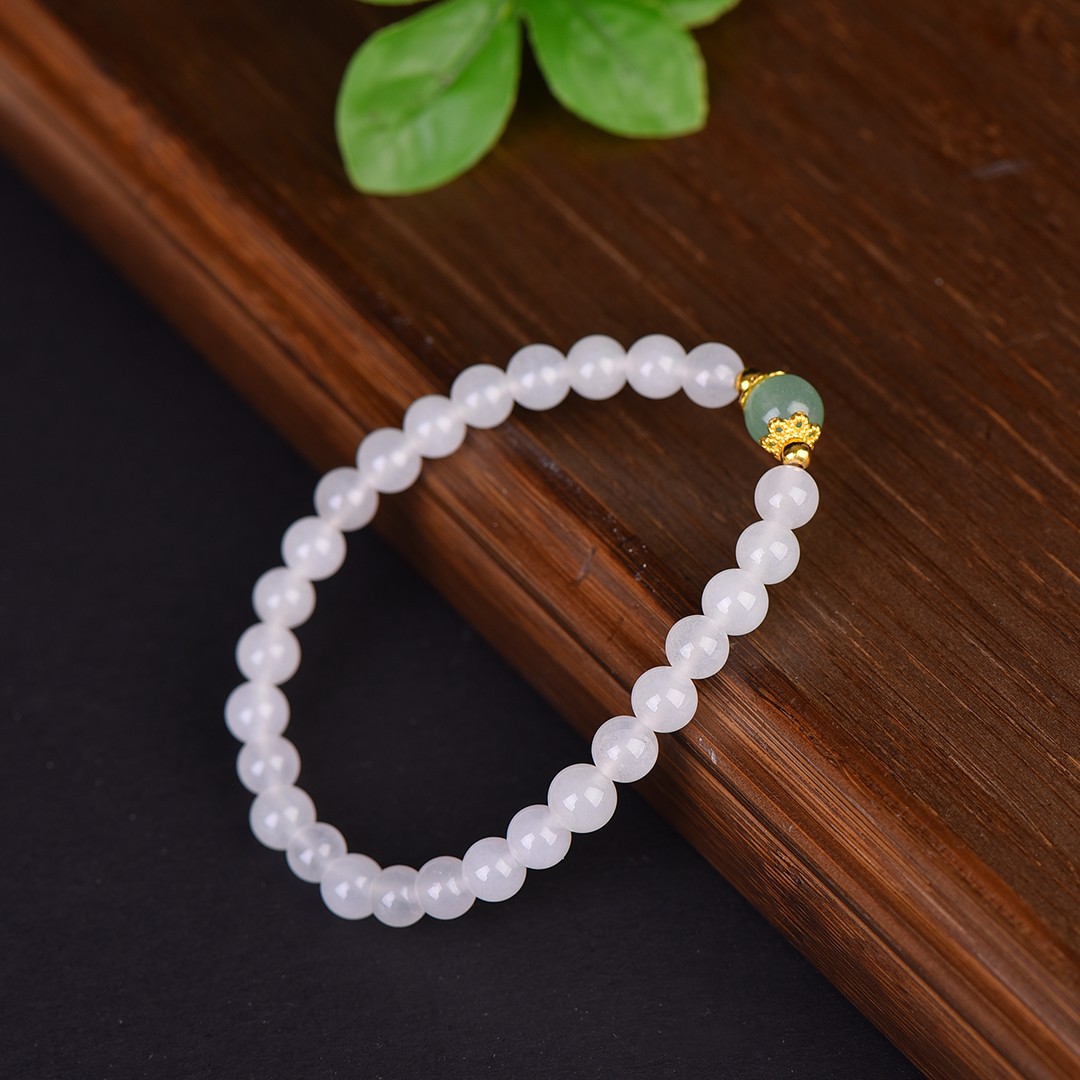 女の子用6mm天然金翡翠ブレスレット、シンプルでニッチな新疆羊脂プラチナ翡翠ブレスレット、工場価格卸売