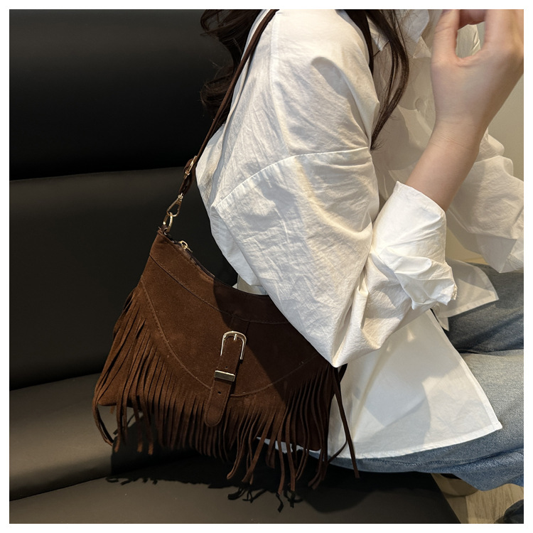 メーカー既製タッセルバッグ女性 2 韓国スタイルインスタイルスエード脇の下レトロ多用途 2025 新しいシングルショルダークロスボディ