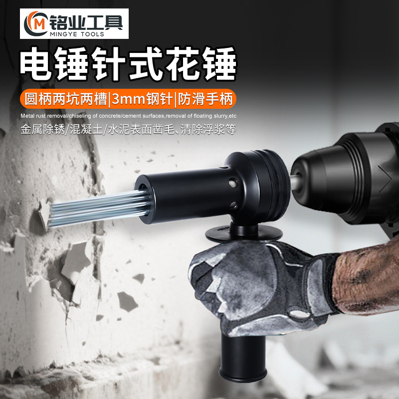 跨境新品电锤用针式花锤除锈去毛刺混凝土凿毛工具Needle Scaler