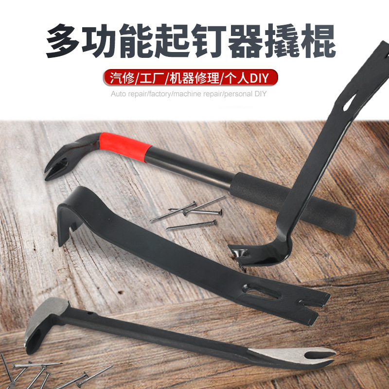高硬度多機能携帯型釘打ち器のバールを開けて木の箱を開けて車のタイヤを抜くツールの平バールの神器を打ちます。