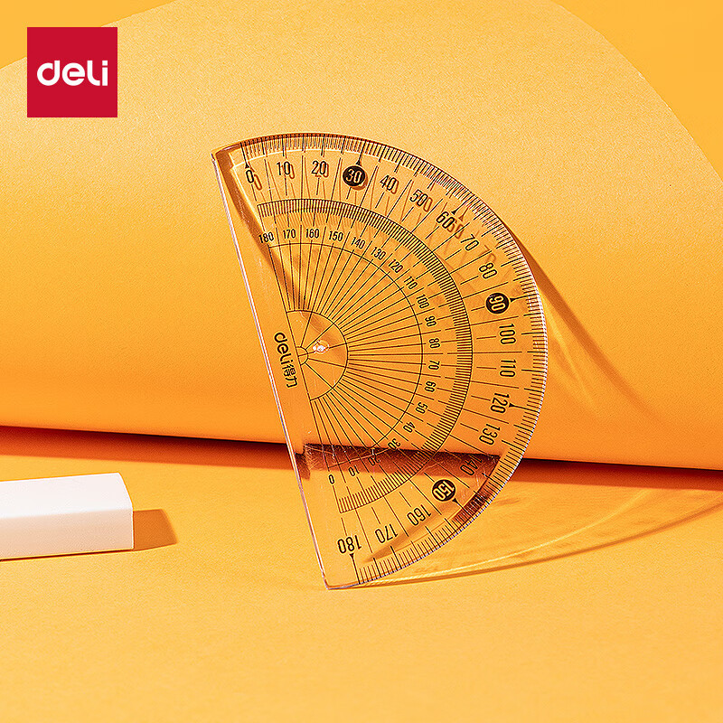 得力V232易拾取量角器透明款刻度清晰按压起翘拿取便捷小巧便携