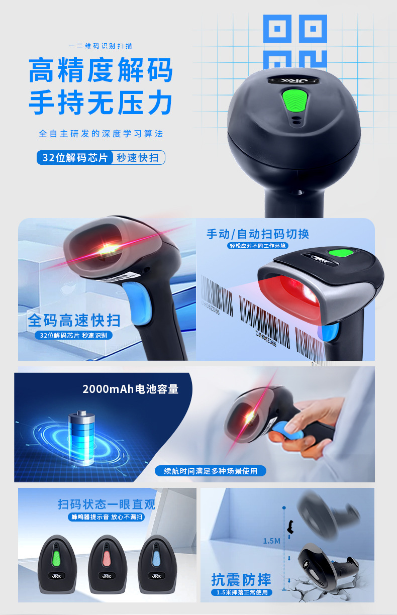 精锐HC201D二维无线蓝牙扫码枪掌中宝手持便携快递扫描枪仓库盘点