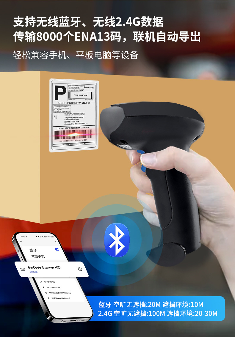 スキャンガン一次元レーザー二次元無線bluetoothバーコードスキャナ宅配便物流薬品トレーサビリティスキャナ
