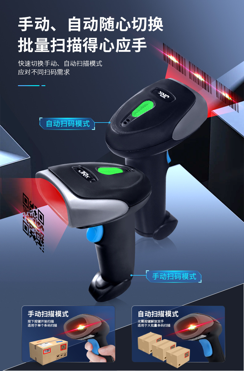 Xinjiamei コードスキャンガン 1D レーザー Bluetooth 2D ワイヤレスバーコードスキャナーエクスプレス物流有線コードスキャナー