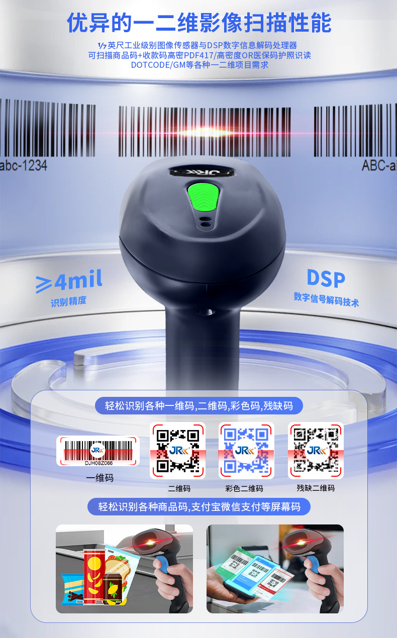 扫描平台超市收银专用扫码枪条码二维码有线扫描器高配无线通用