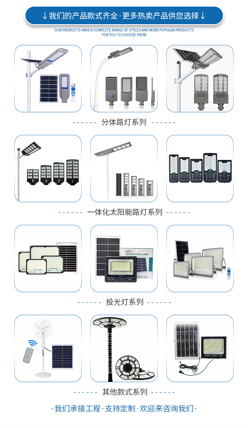 メーカーは高出力投光器、農村建設用太陽光街路灯、市街地工事道路防水照明を供給しています。