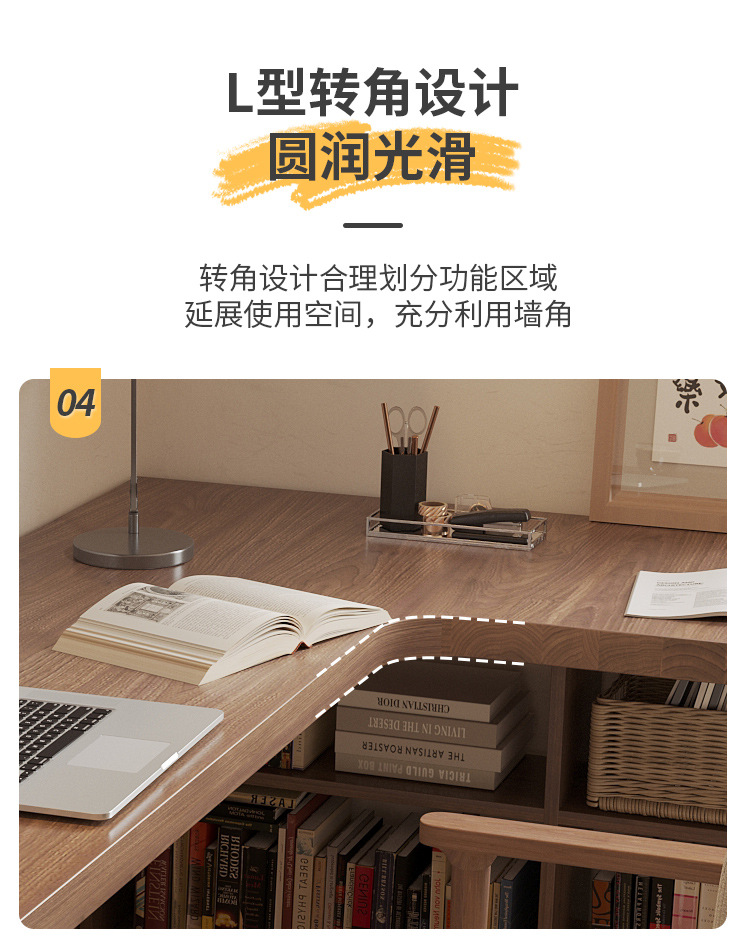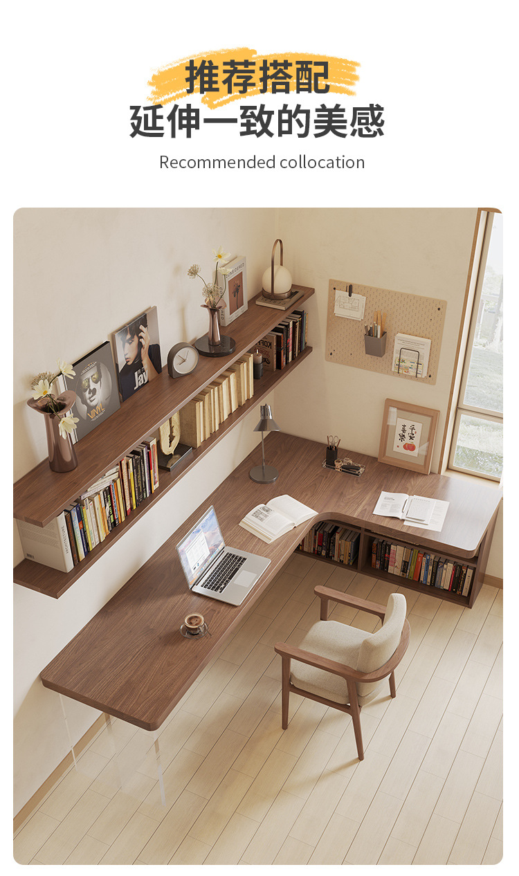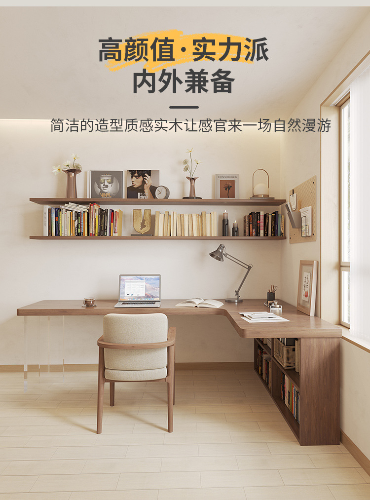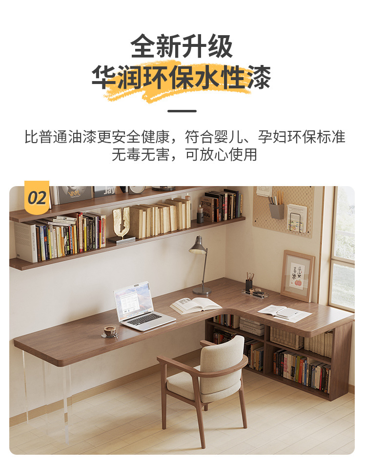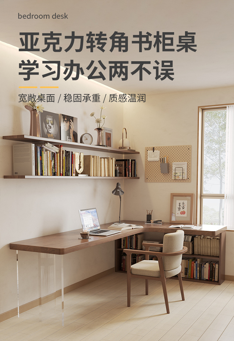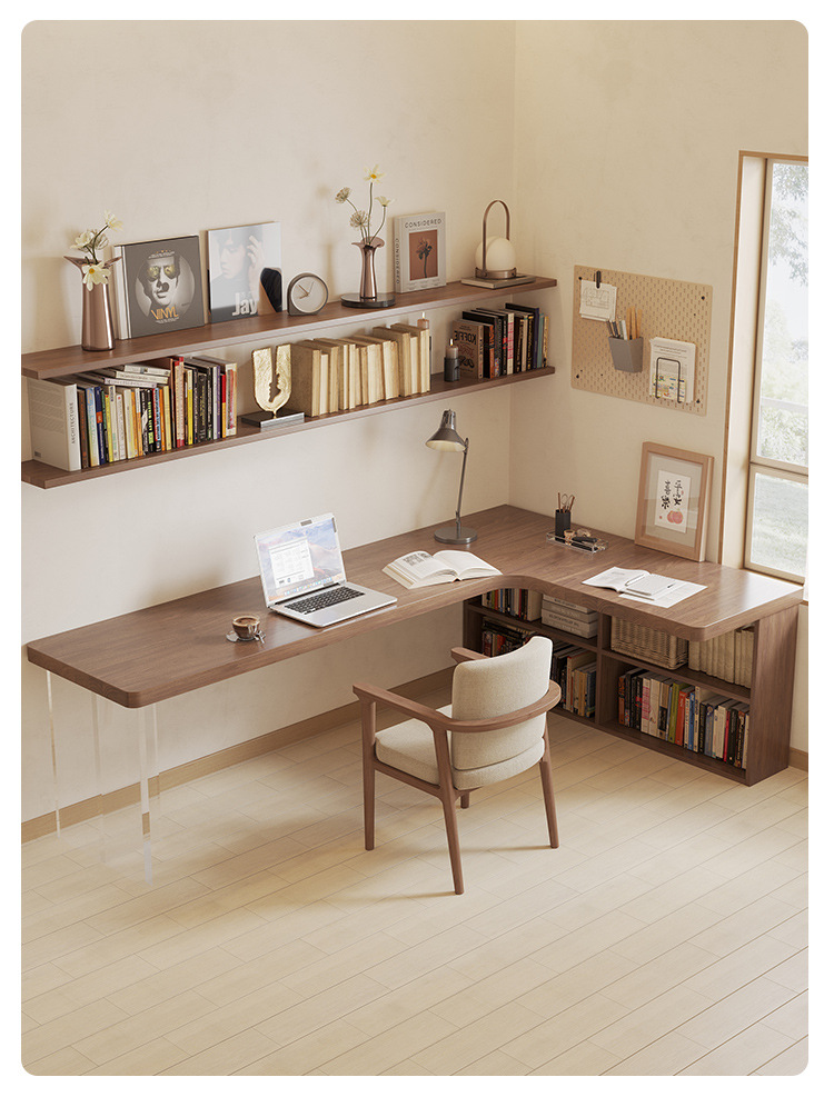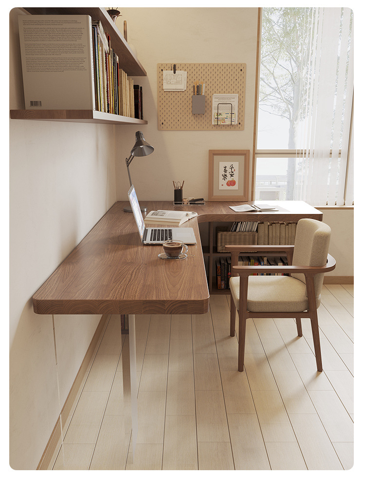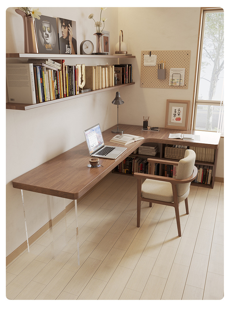 シンプルアクリル吊り下げL字型半囲みデスク無垢材コーナーコンピュータデスクコーナーデスク本棚本棚