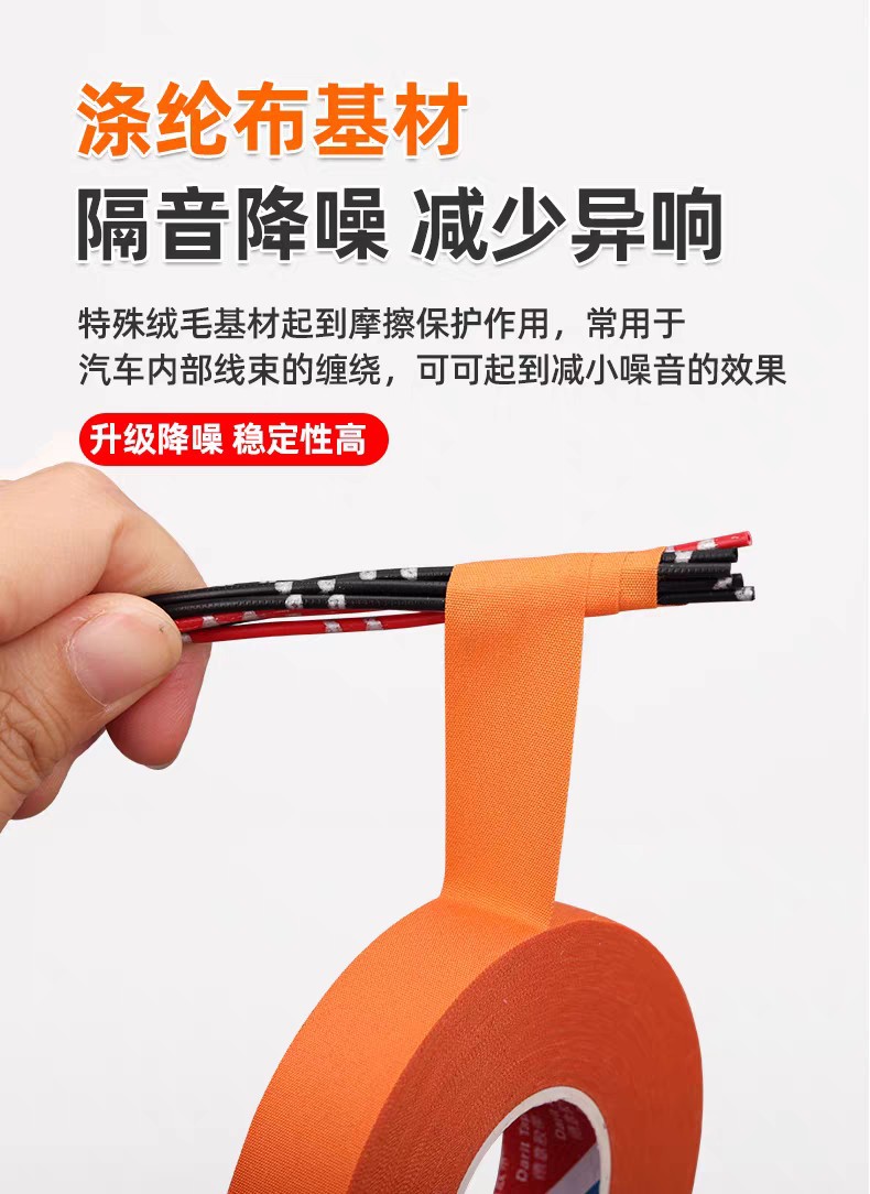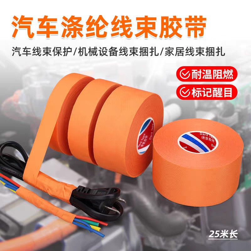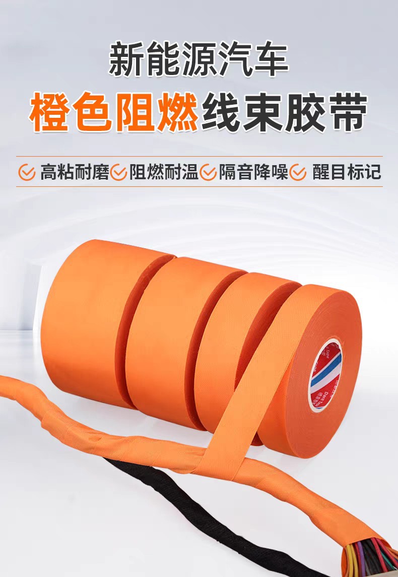 オレンジ色の自動車用ワイヤーハーネステープ、新エネルギー特殊耐摩耗保護、難燃性エンジンルーム中央制御ノイズ低減ストラップ