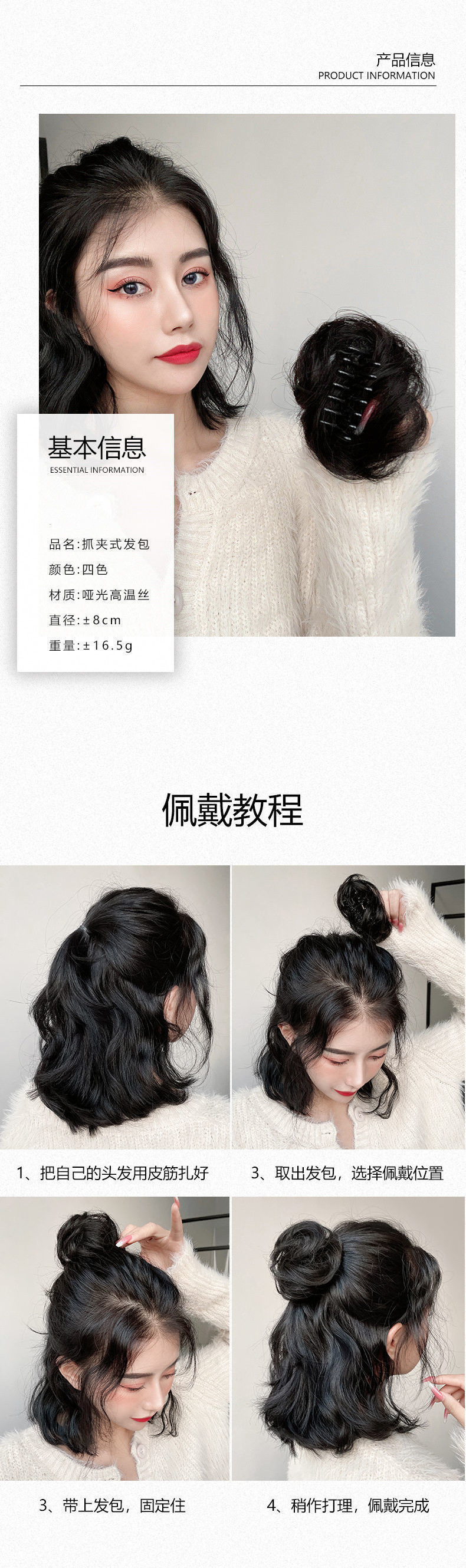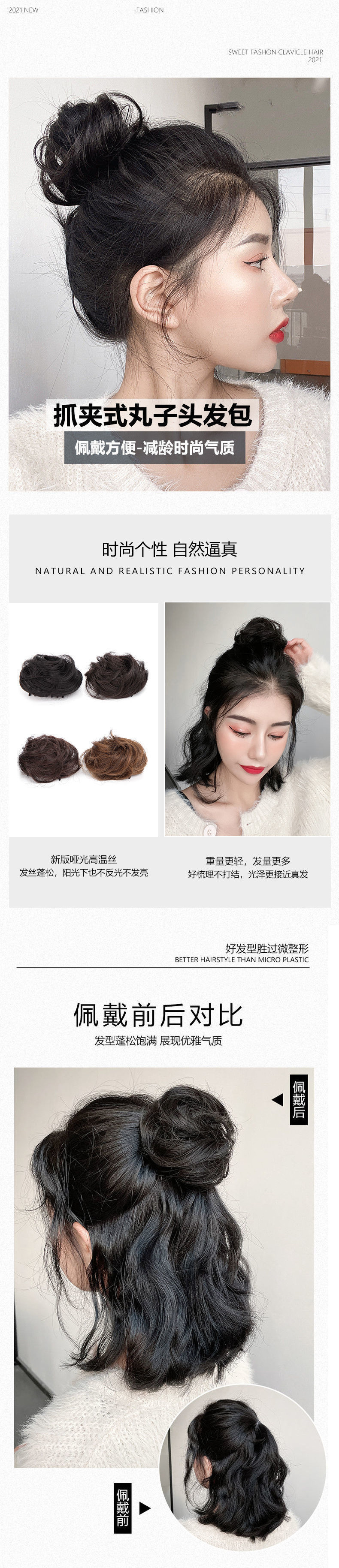 仿真发低丸子头假发发圈盘发发包古风假发包花苞头全真人发蓬松