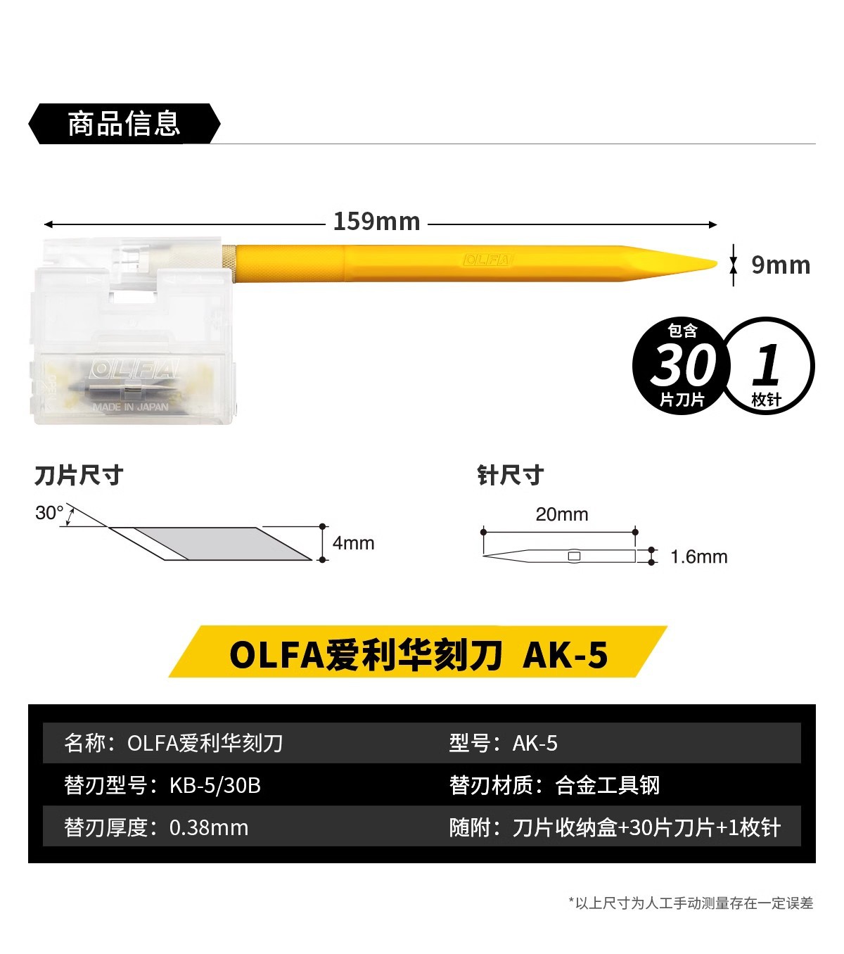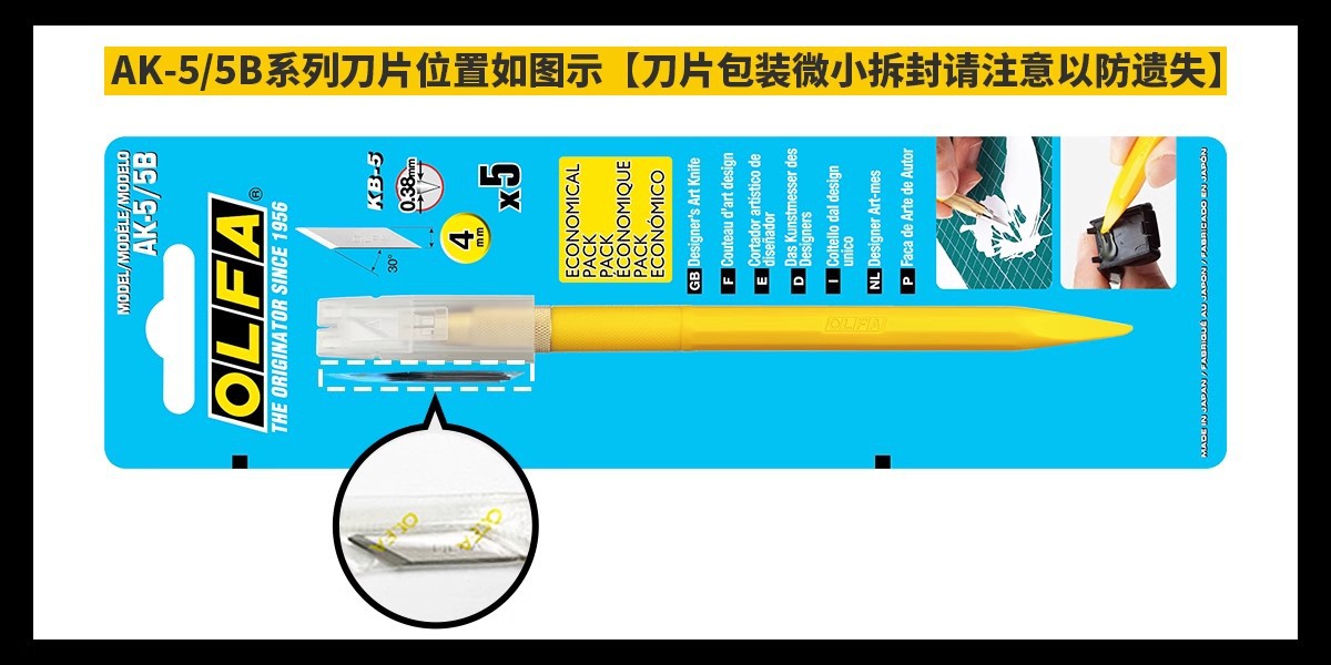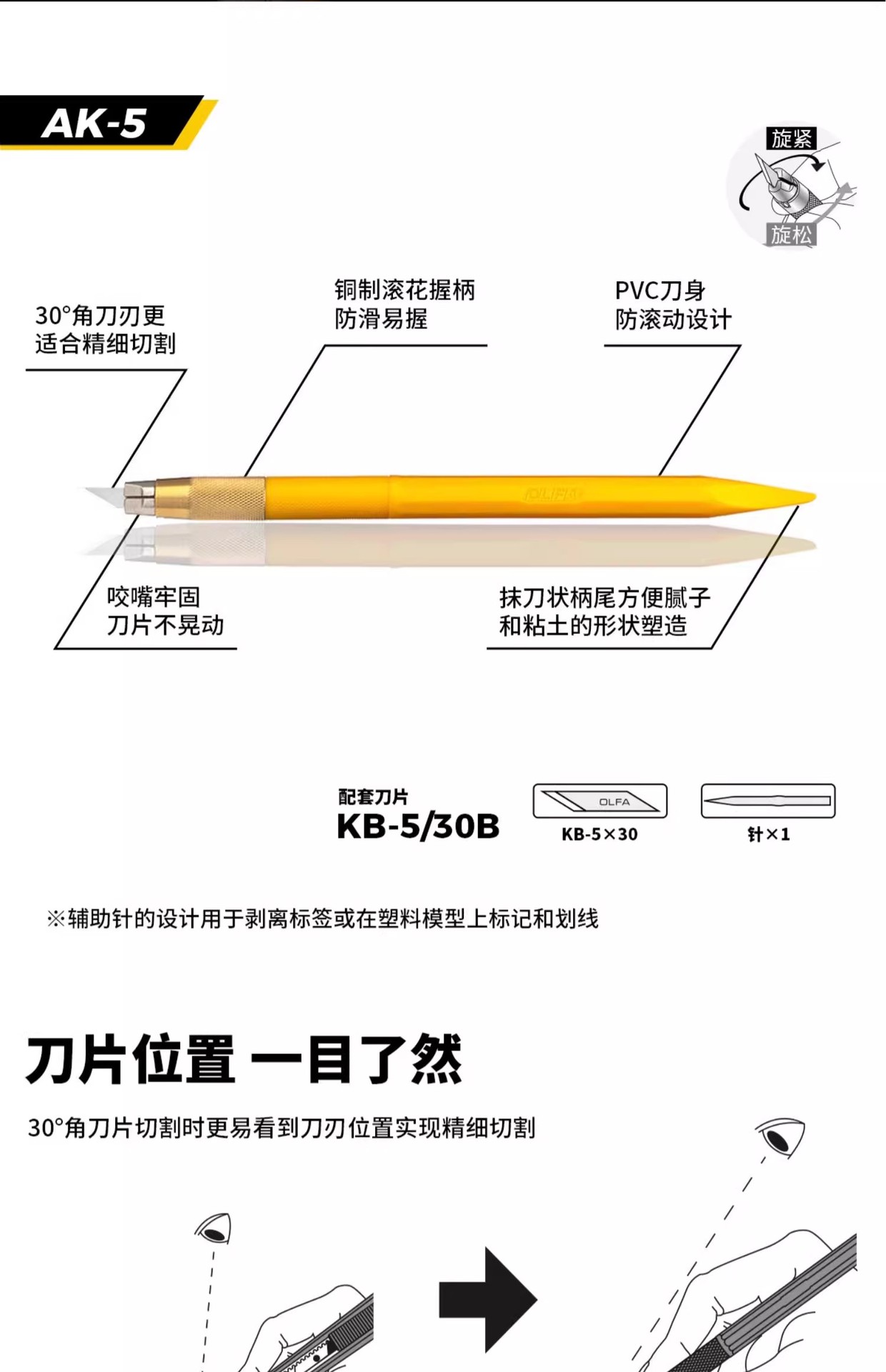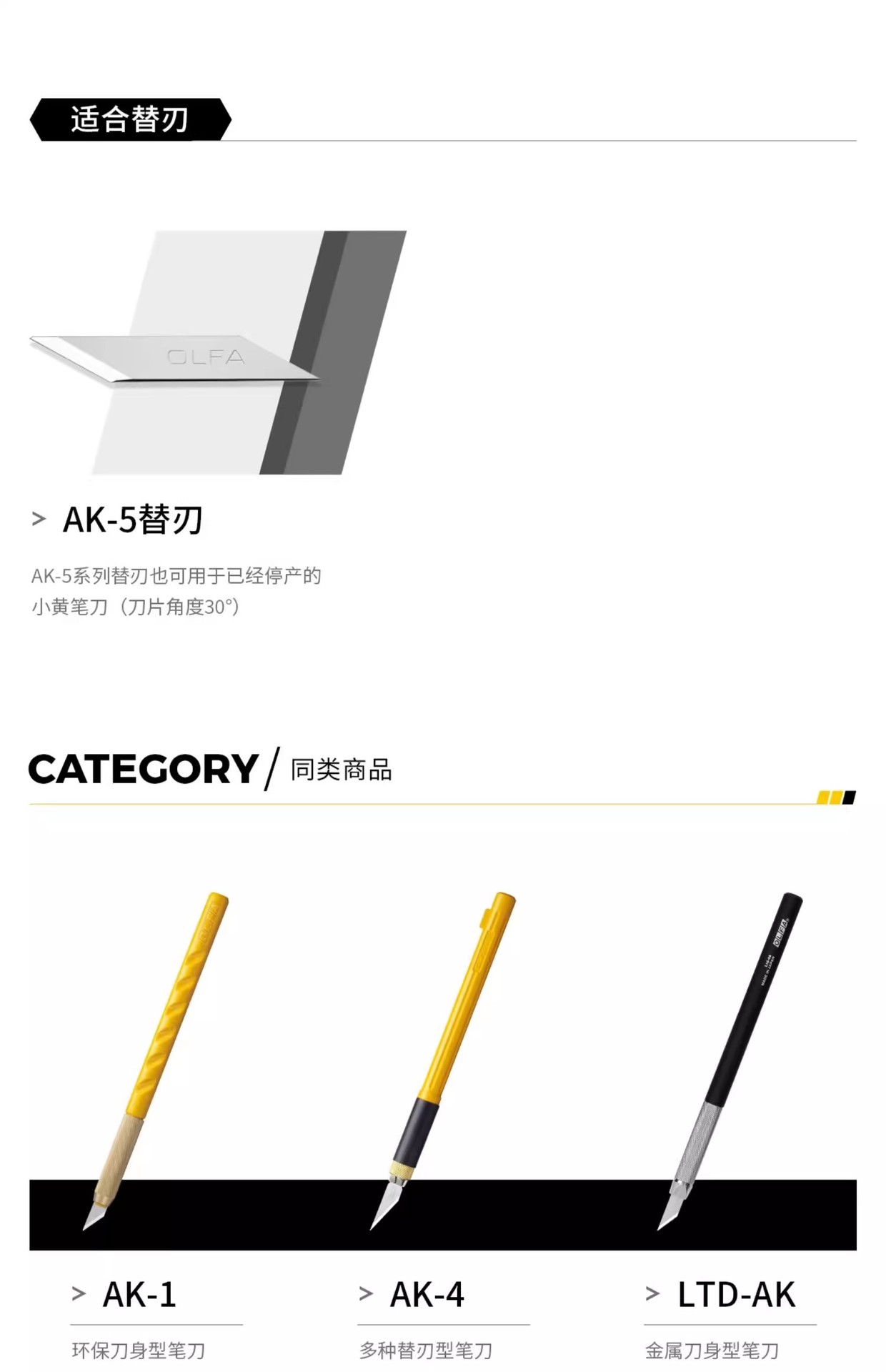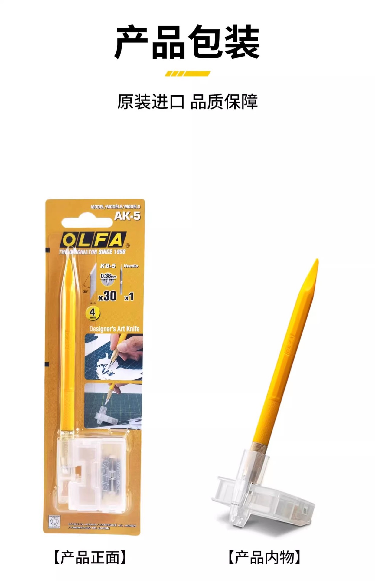 日本OLFA純正カッターナイフAK-5/5Bゴム印彫刻ペンナイフ紙彫り革模型手彫りナイフ