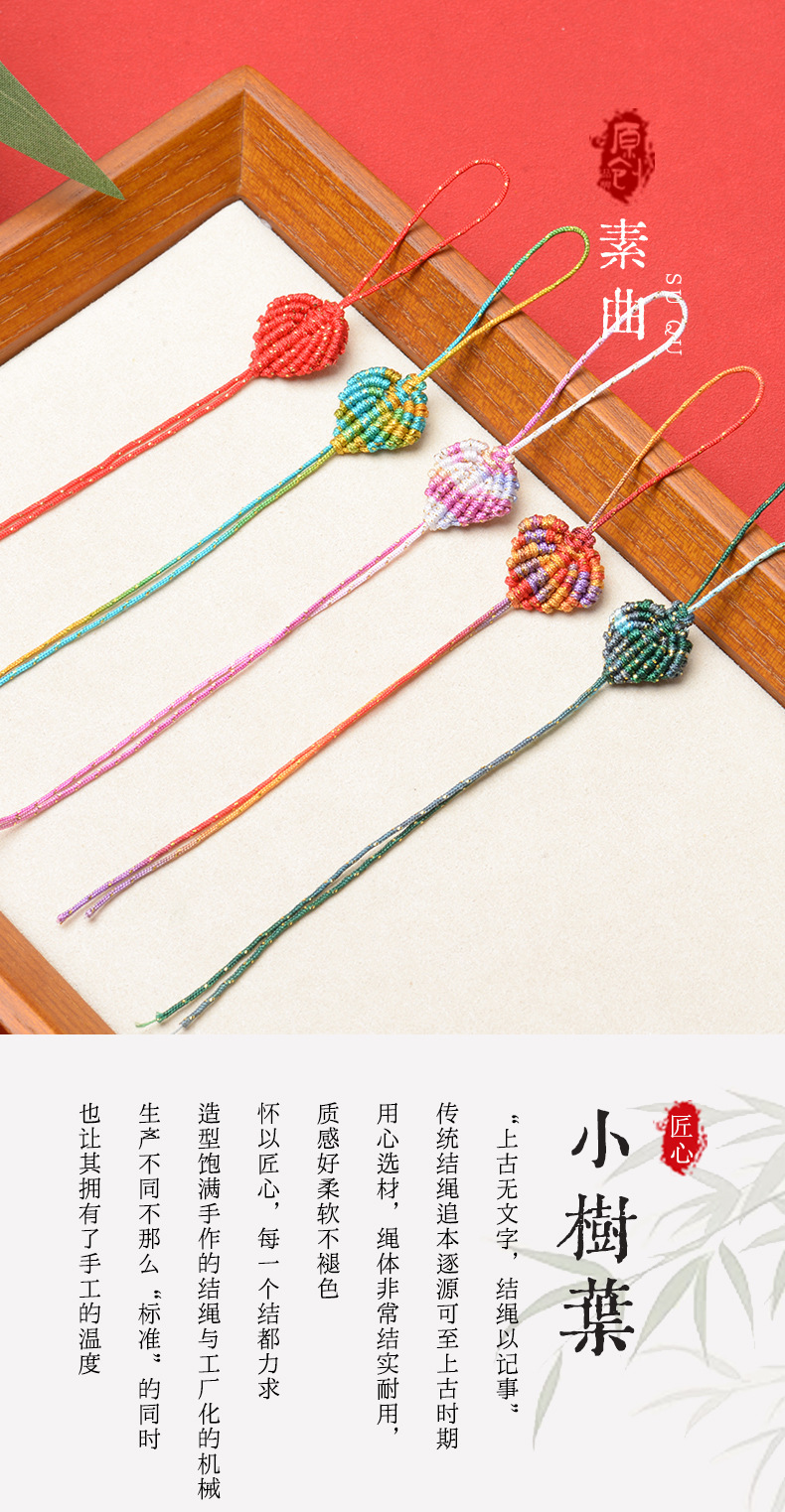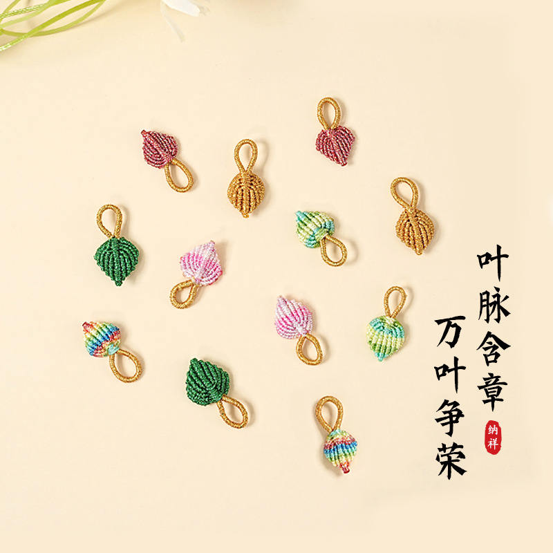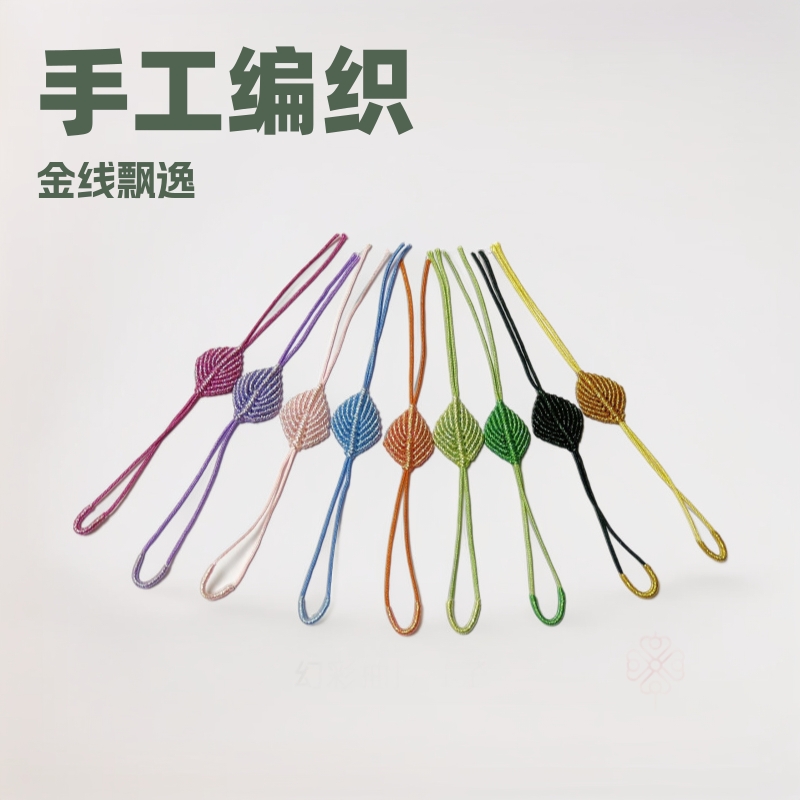 全手工编织抽拉金丝段染彩线小叶子手链挂绳吊坠手绳DIY配饰挂件