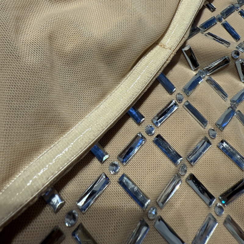 クロスボーダー欧米重工系セクシーガールラインストーンヌードカラー透け感セクシーなスリムフィット長袖ワンピースロングドレス宴会イブニングドレス