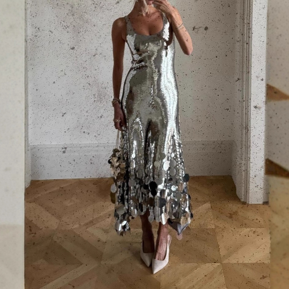 欧美亚马逊跨境2025新款晚会时尚大码重工大亮片珠片连衣裙