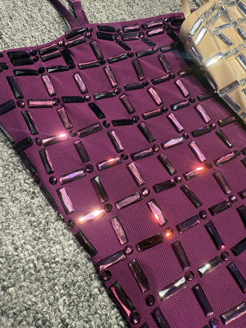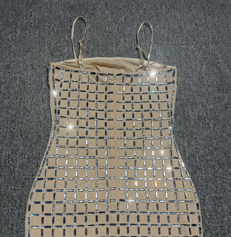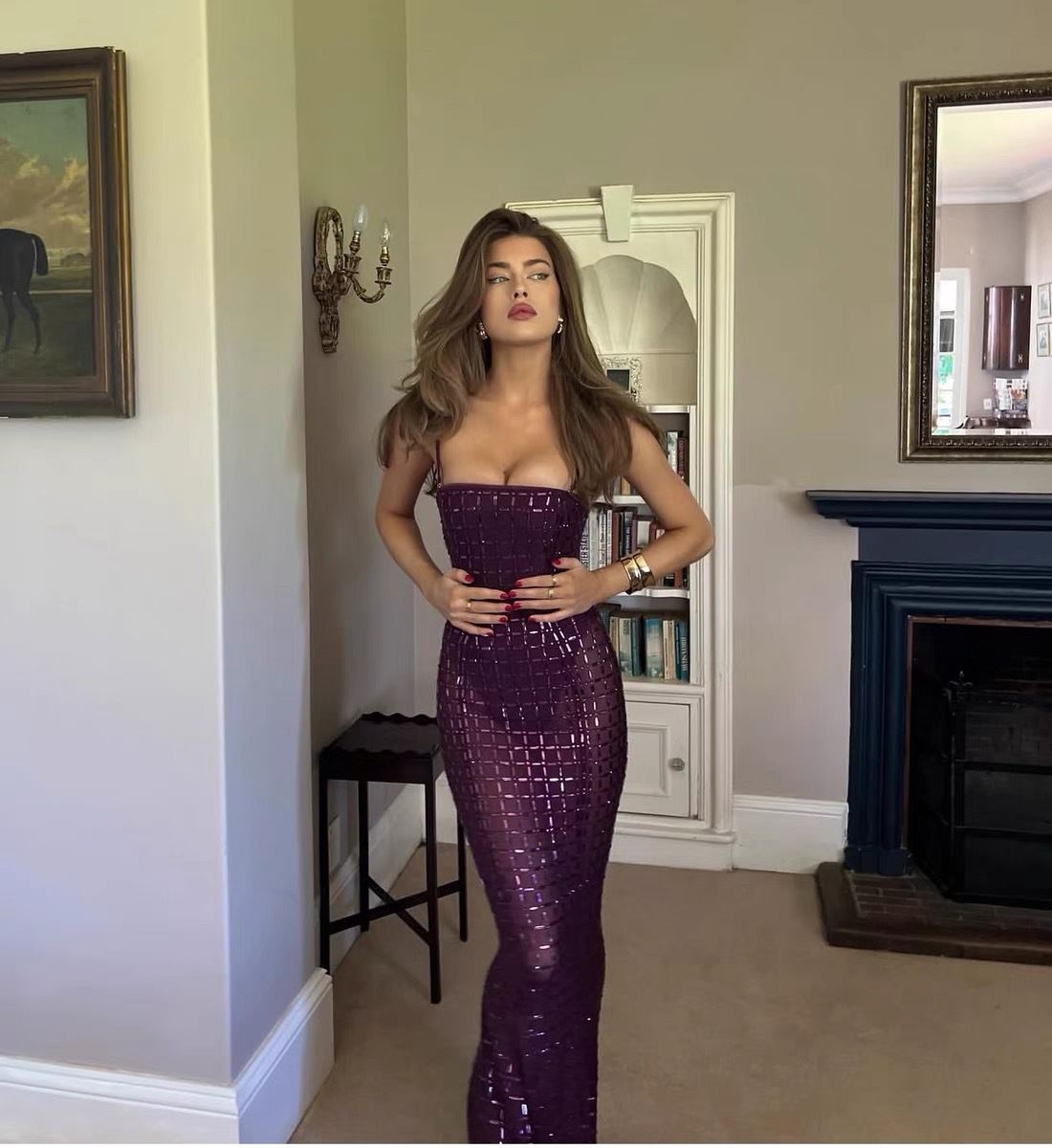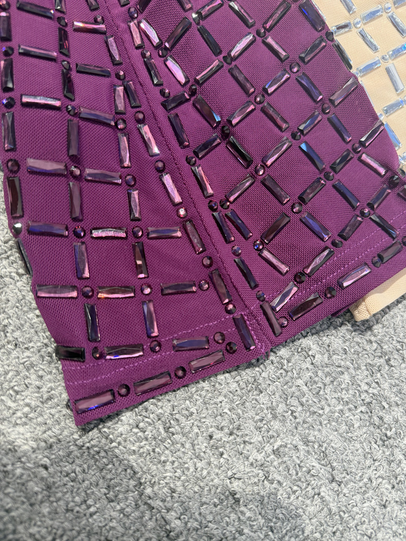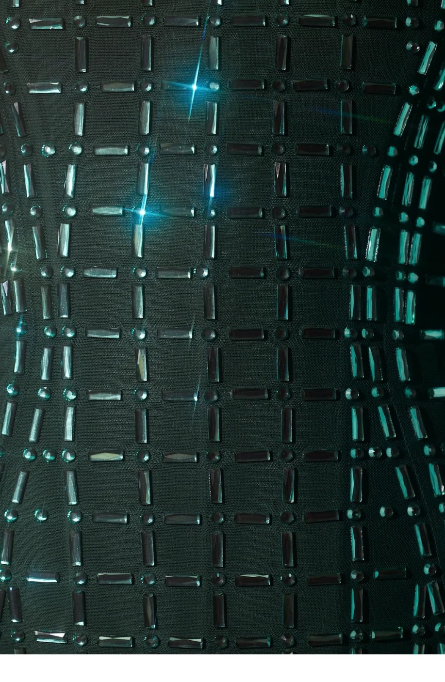 亚马逊跨境新款重工华丽轻奢满钻烫钻长裙优雅气质约会绷带连衣裙