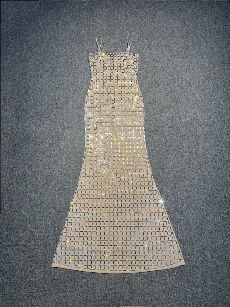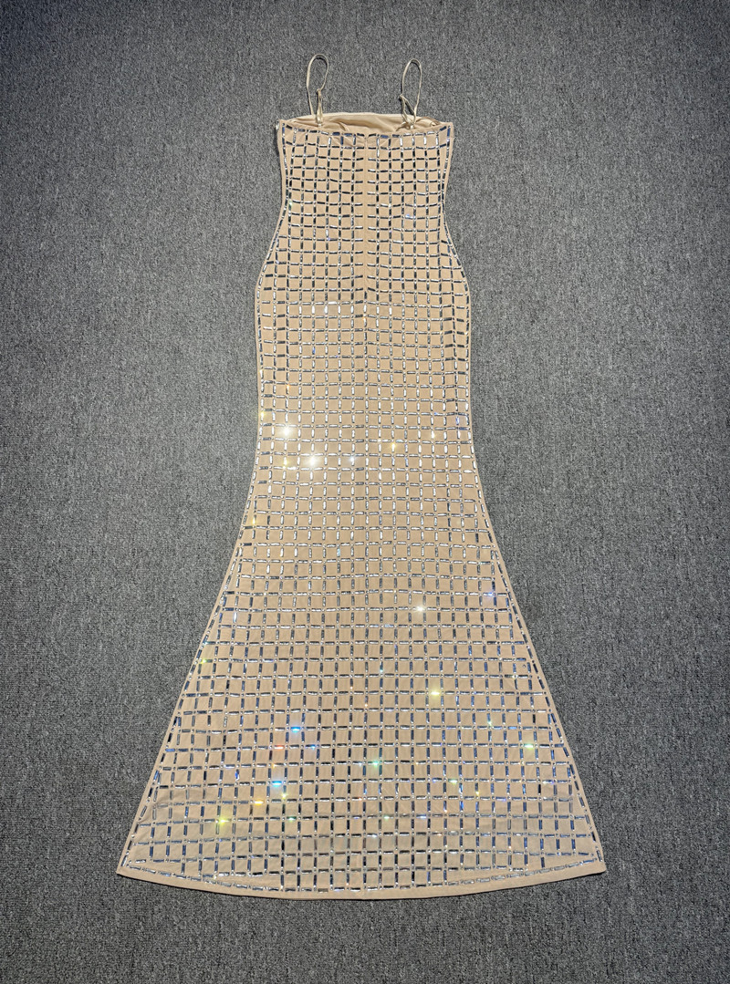 クロスボーダー独立ステーションヘビーデューティゴージャスで軽い高級スターイブニングドレスヌードグリッターラインストーンバックレスサスペンダードレス女性用