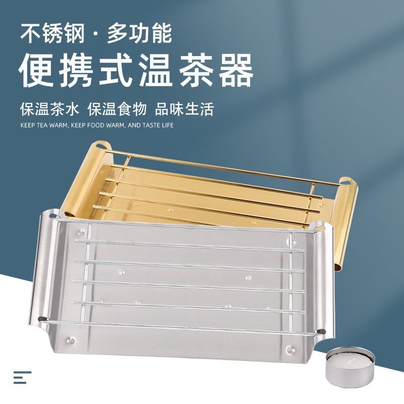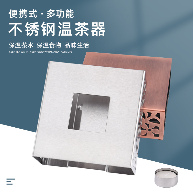 ステンレス角型囲炉煮茶器多機能屋外食品保温加熱ベースキャンドル温茶器卸売り