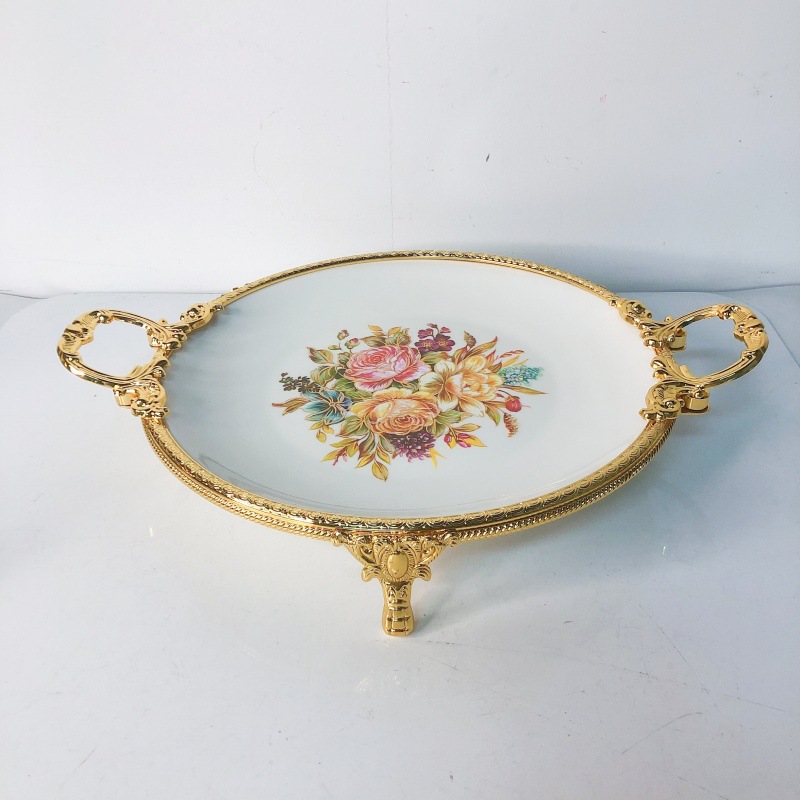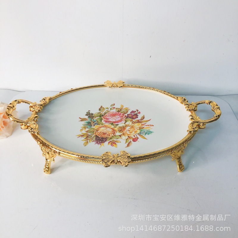 金属陶瓷果盘家用创意客厅茶几水果盘果斗盆点心盘西餐盘装饰摆件