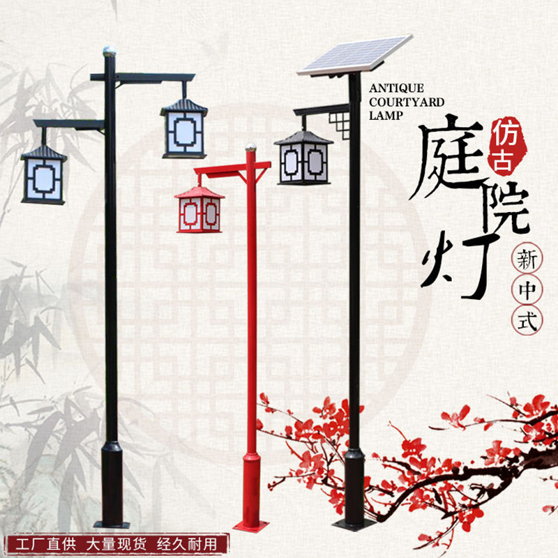 ソーラーガーデンライト屋外 3m 中国風アンティーク風景ライトガーデンヴィラ風光明媚な広場双頭照明