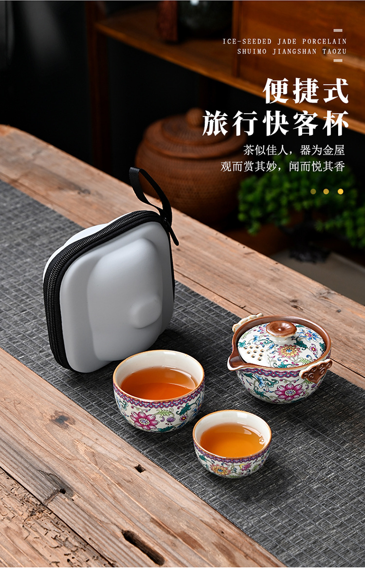 陶磁古韻旅行茶器快客杯セットカスタムお茶携帯式車載一本三杯ビジネスプレゼント