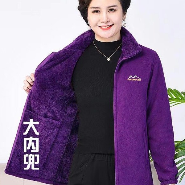 中老年女装秋冬摇粒绒外套女保暖加厚宽松大码双面绒外套女妈妈装