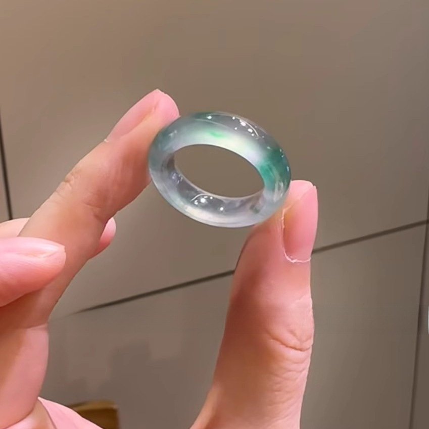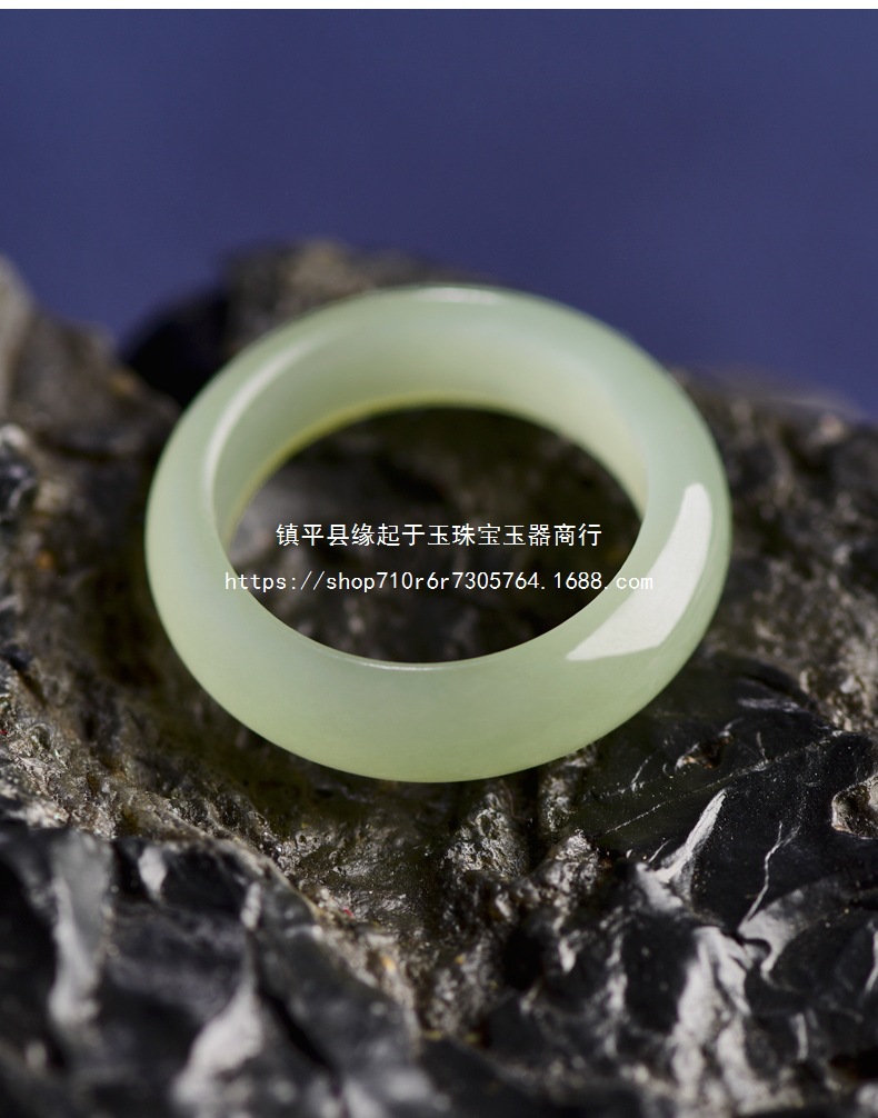 青白翡翠晴水指輪天然古材ホータン翡翠無地指輪氷種翡翠指輪女性用シンプル古代風ギフト