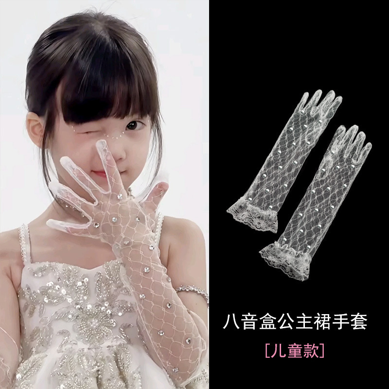 儿童礼服蕾丝手套露思八音盒公主生日水钻花童演出写真手套沫言款