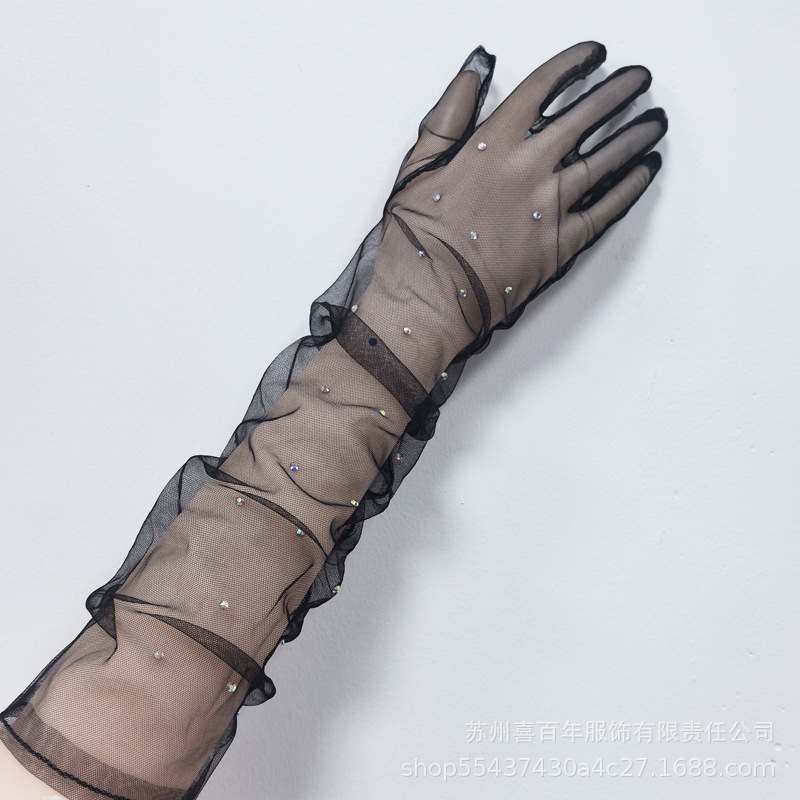 ブライダルグローブショートサテンリボンメッシュグリッターダイヤモンドレースメッシュロングブラックウェディングドレス