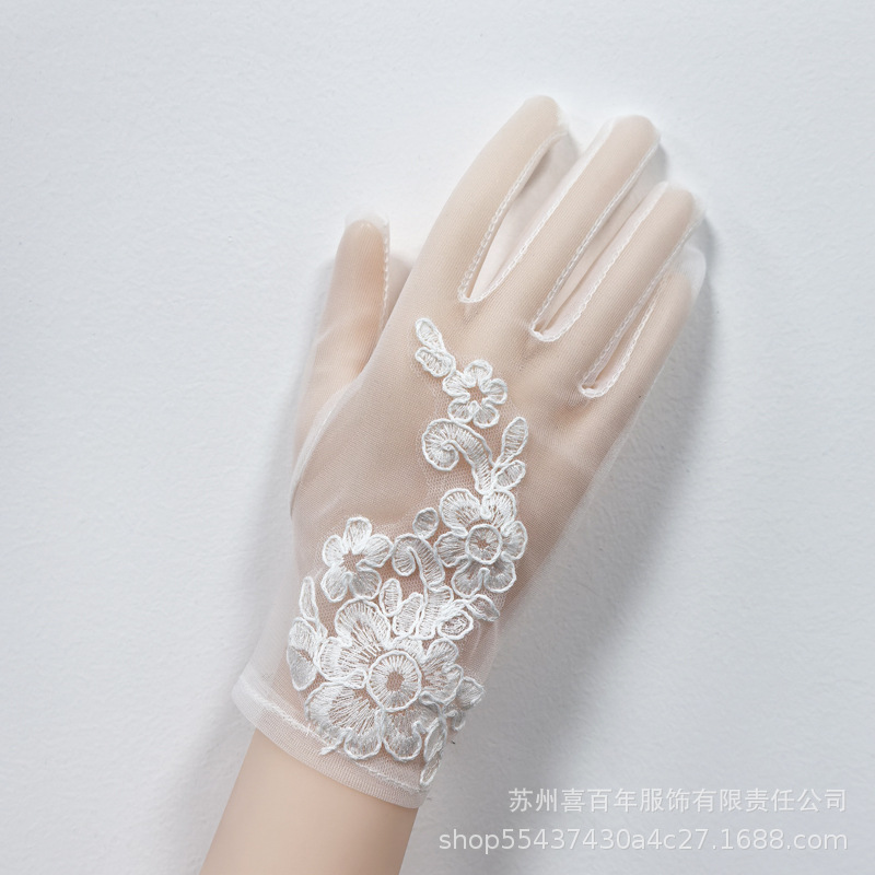 花嫁のウェディングドレスの薄い糸のレースの手袋の日常の演出は人に結婚の短い金のネットの糸のセクシーな白色の卸売りを送ります。