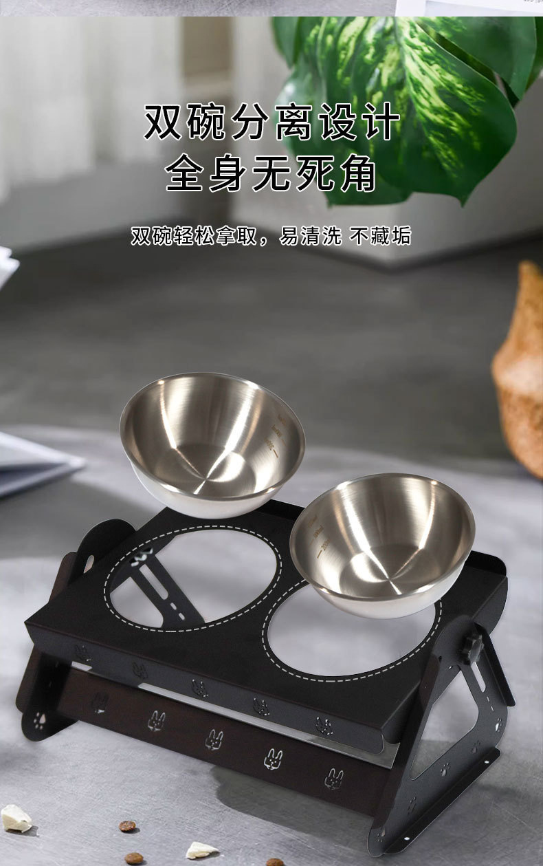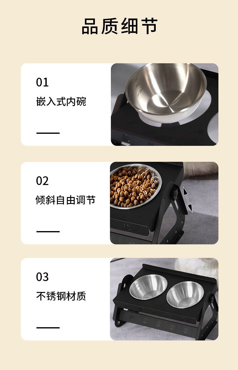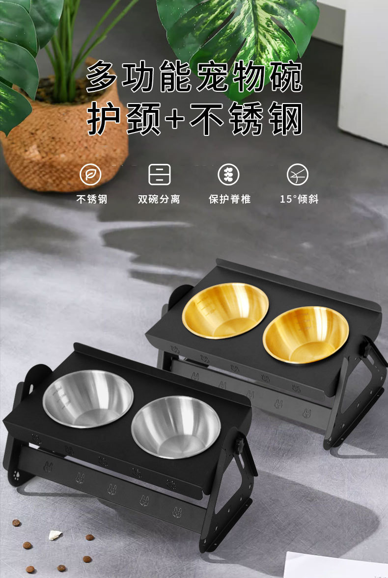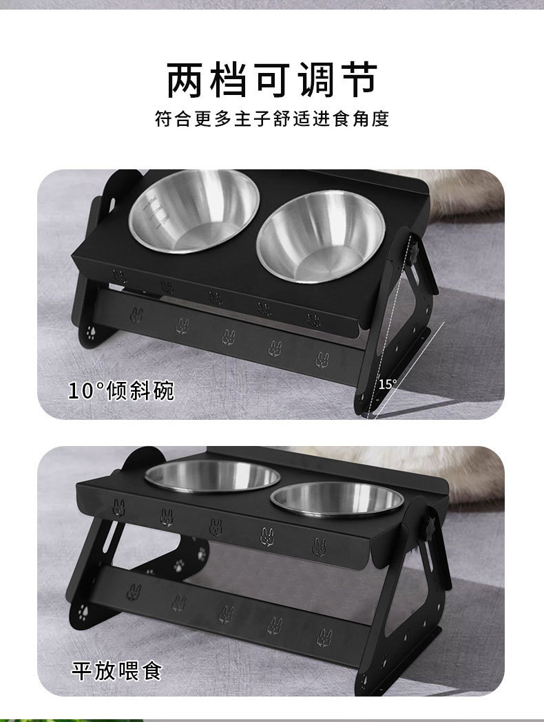 多段階に調整可能なペット用ダイニングテーブル、ステンレス製ダブルボウル、犬用大容量ネックプロテクションダブルボウル、高さのあるドッグフードボウル