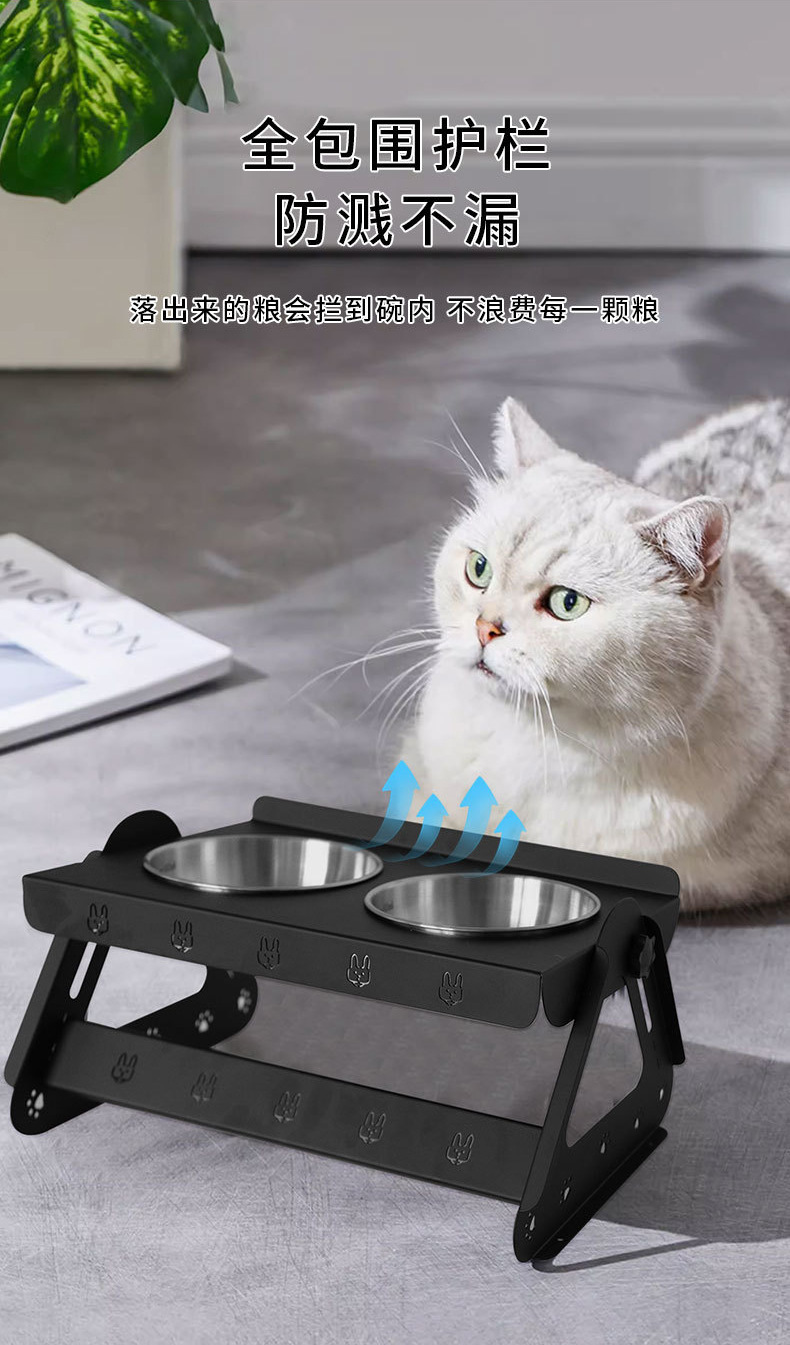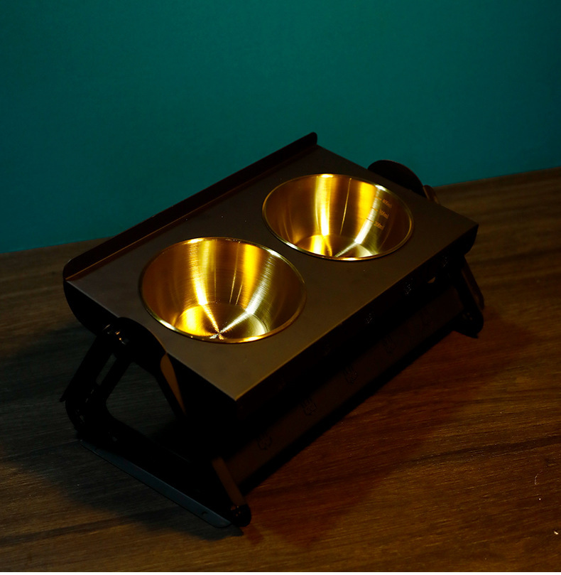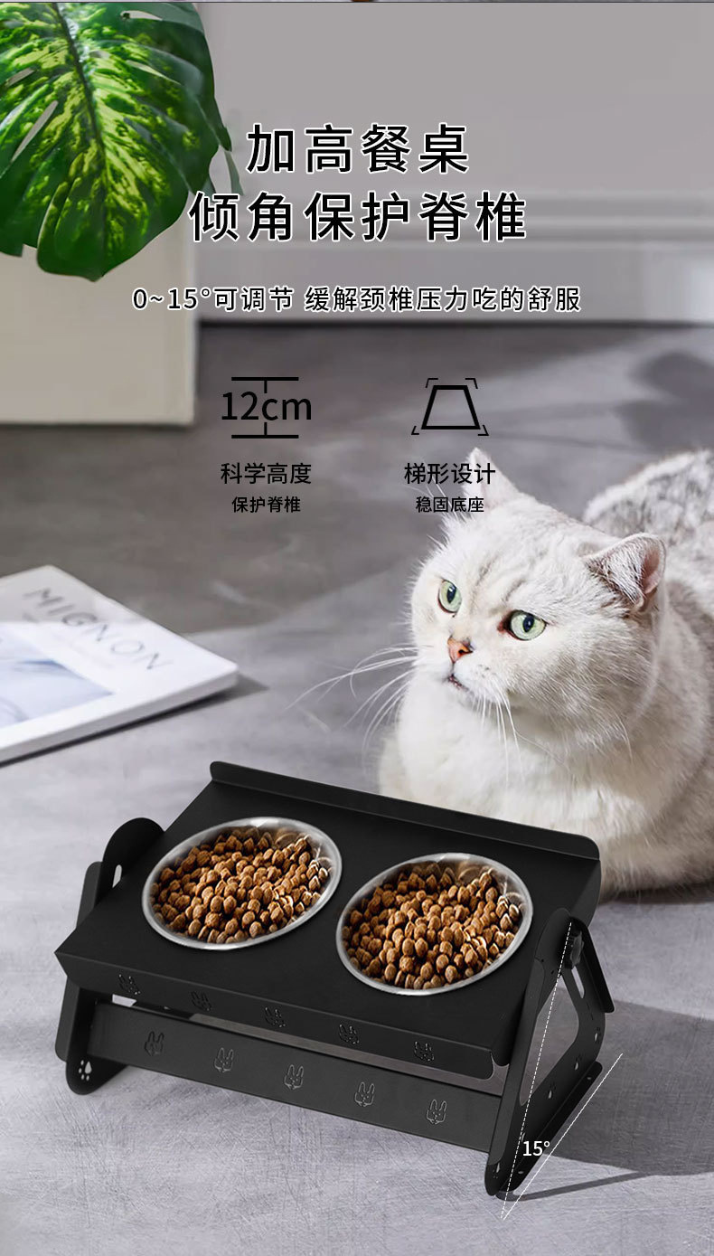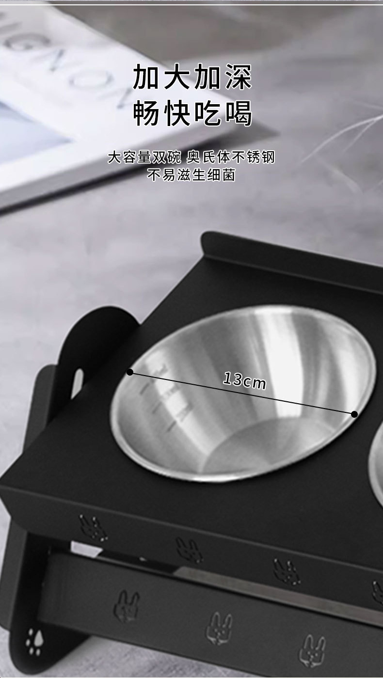 多段階に調整可能なペット用ダイニングテーブル、ステンレス製ダブルボウル、犬用大容量ネックプロテクションダブルボウル、高さのあるドッグフードボウル