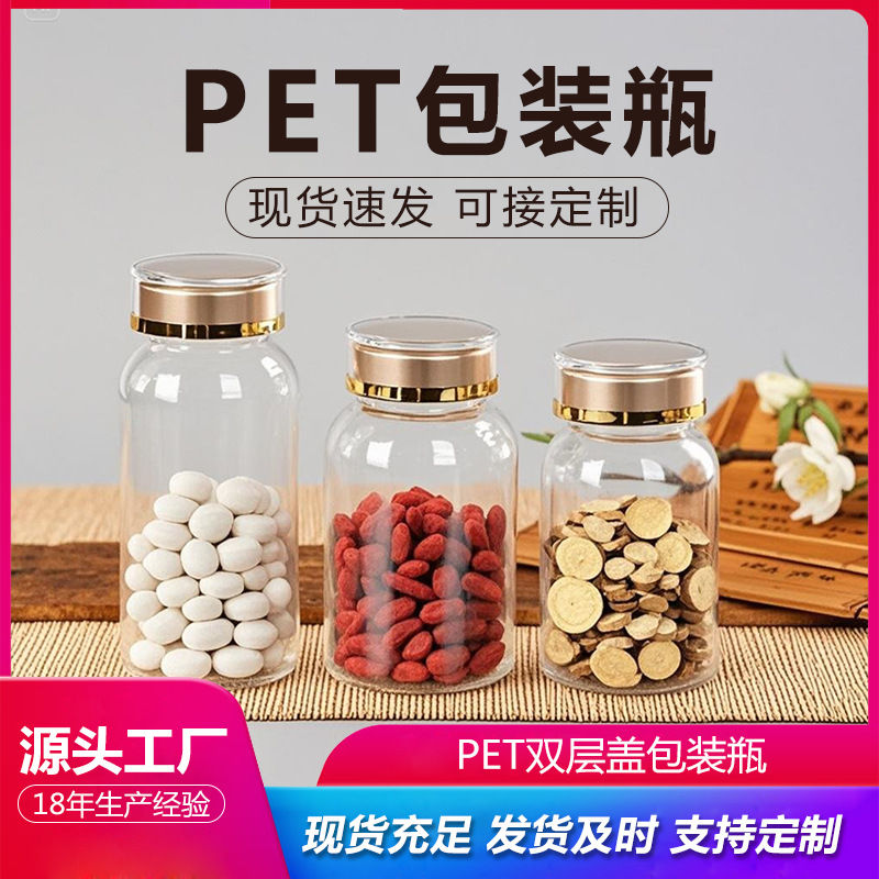 二重蓋PET健康食品ボトル、胞子粉末、アメリカ人参、高級感のある透明プラスチックボトル、食品グレードの薬材ボトル