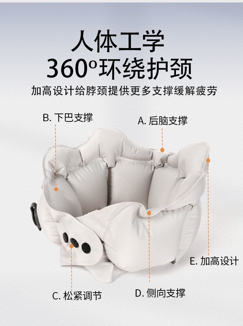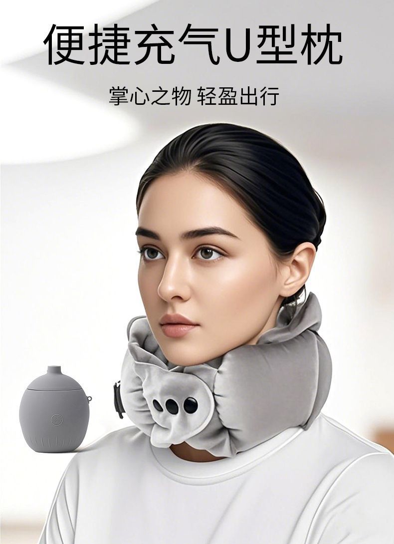 インフレータブル U 字型枕夏アイスシルク頚椎枕抗頭下垂口吹き首枕旅行インフレータブルポータブルツーインワン首枕