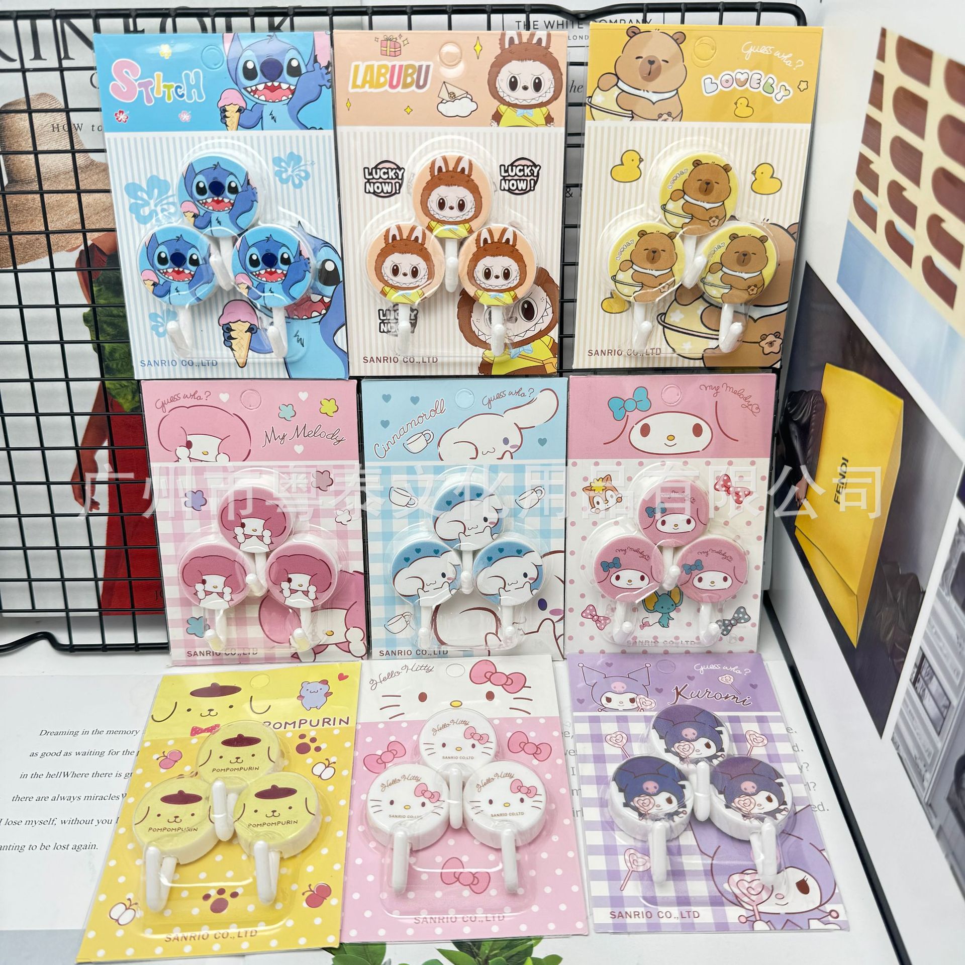 外贸三丽鸥库洛米造型挂钩美乐蒂粘钩迷你大耳狗钩子3个装组合批