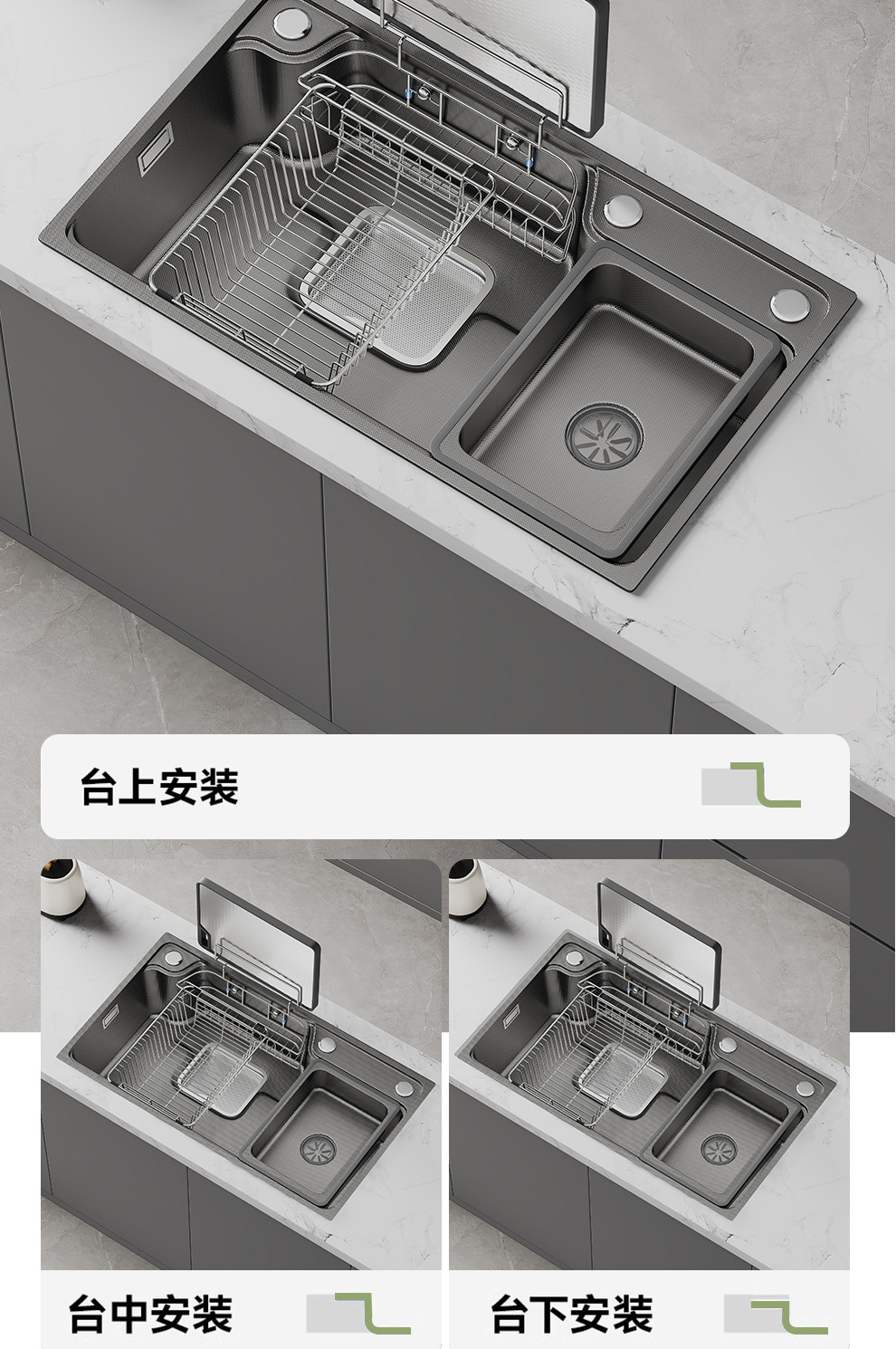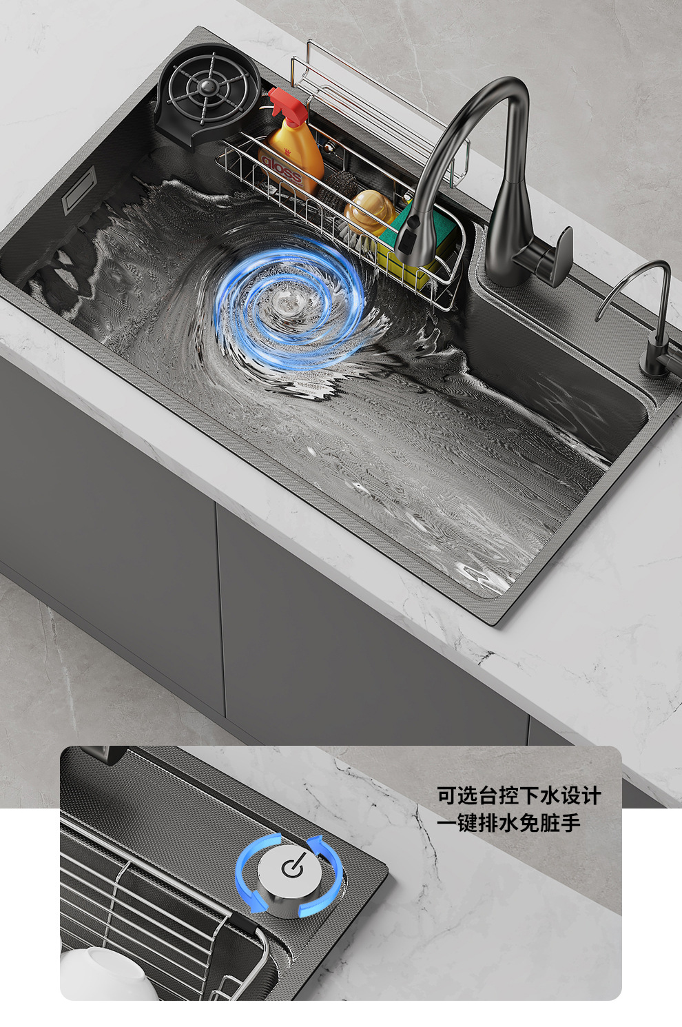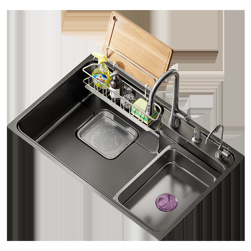 左下水ステンレスキッチンシンク SUS304 ナノガングレー左排水シンク家庭用スラグ集めシンク