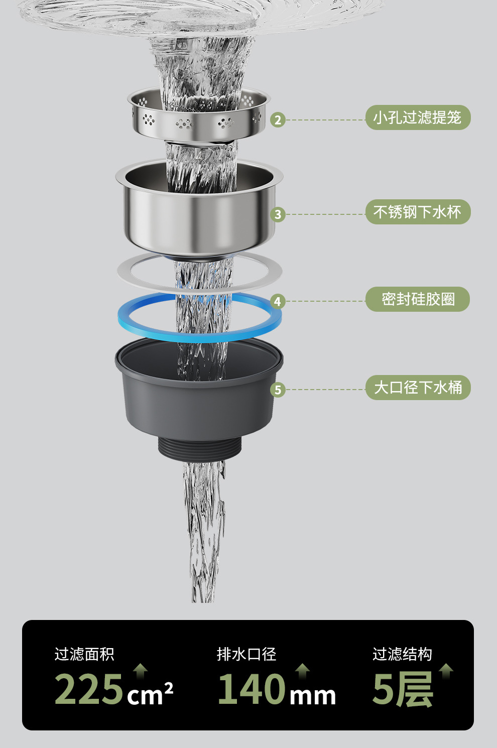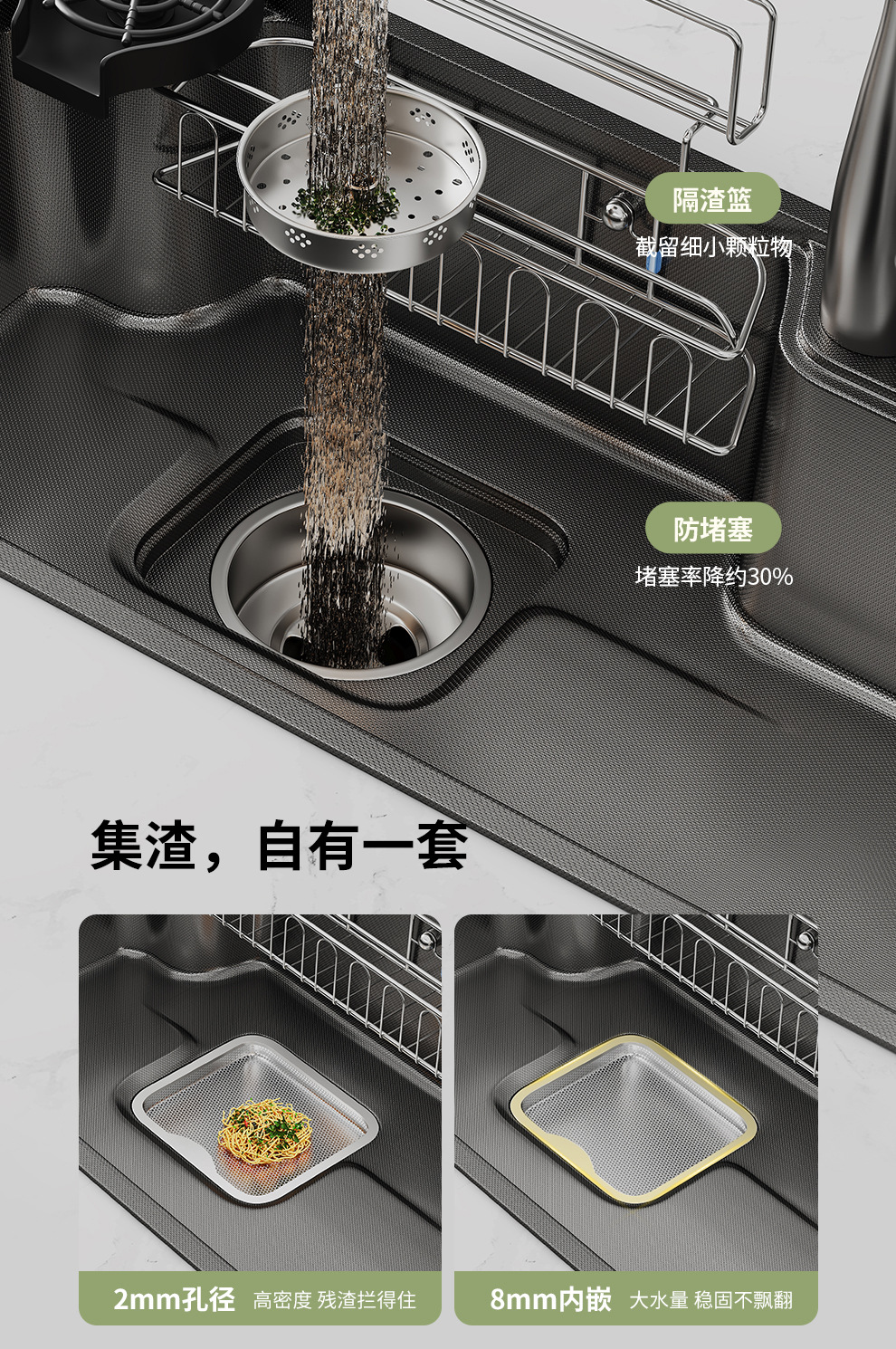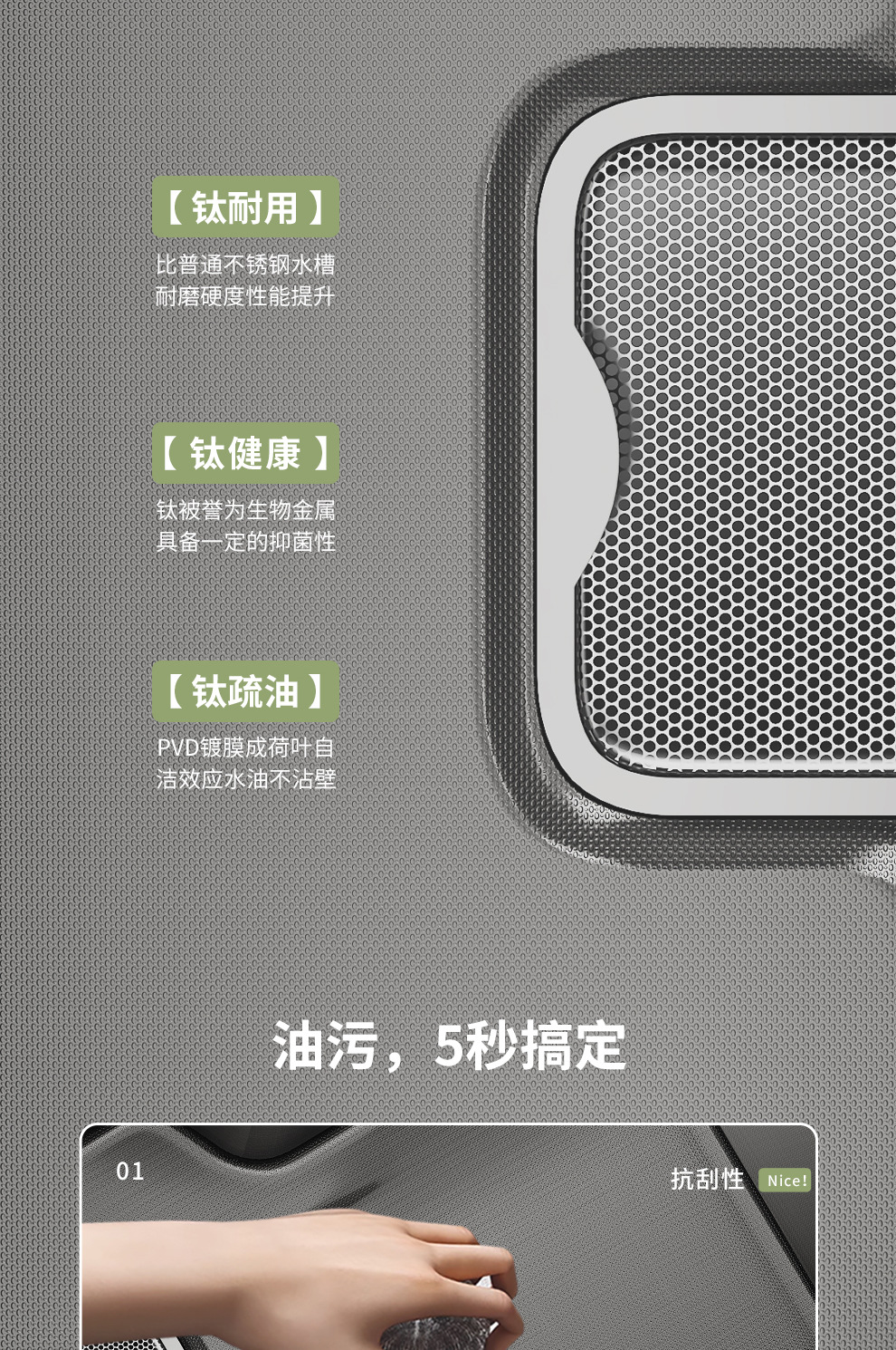 左下水ステンレスキッチンシンク SUS304 ナノガングレー左排水シンク家庭用スラグ集めシンク