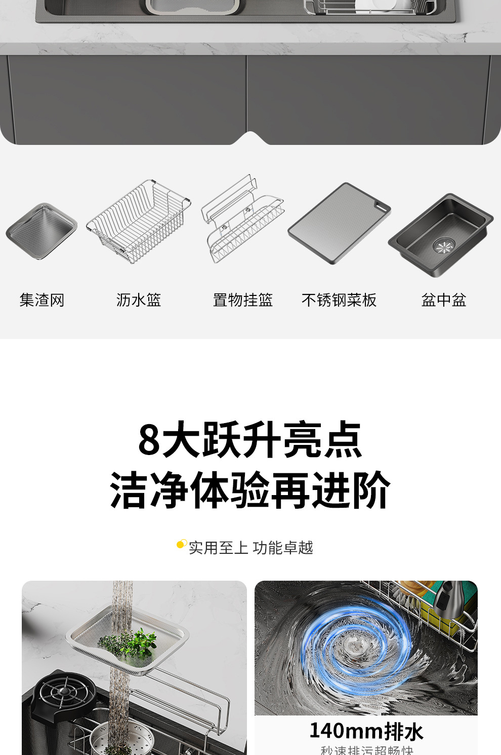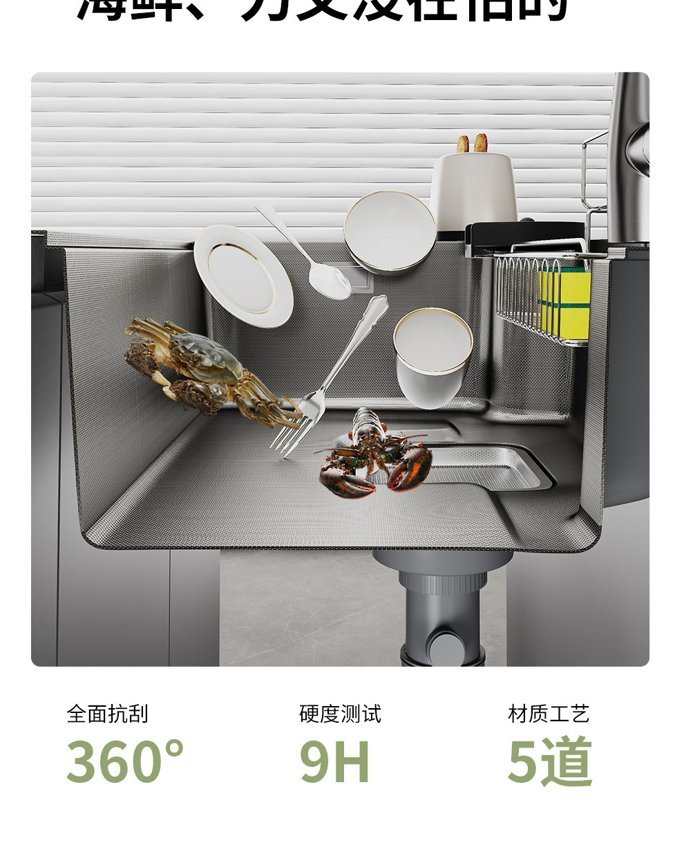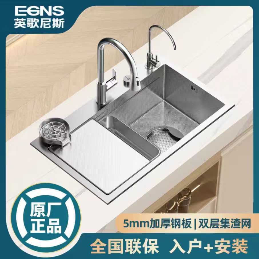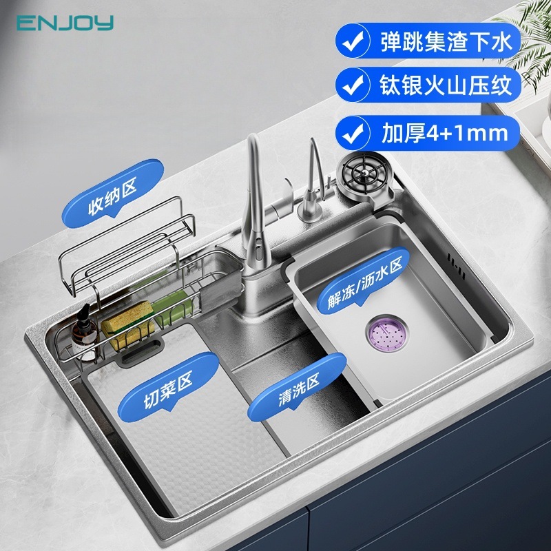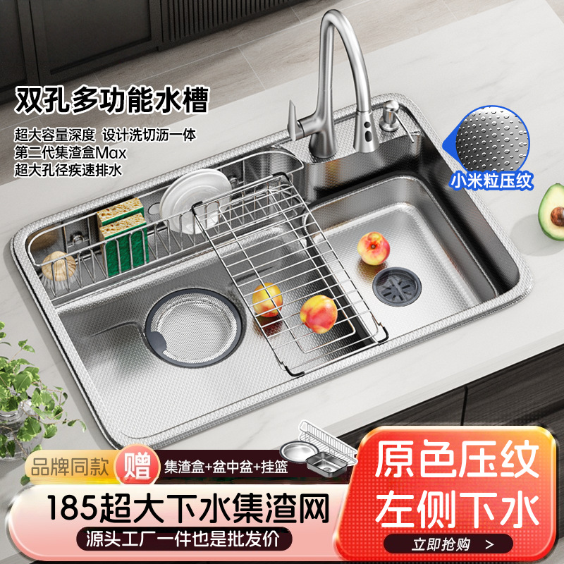品牌同款日式大单槽304不锈钢一体洗菜盆原色0涂层集渣洗碗池