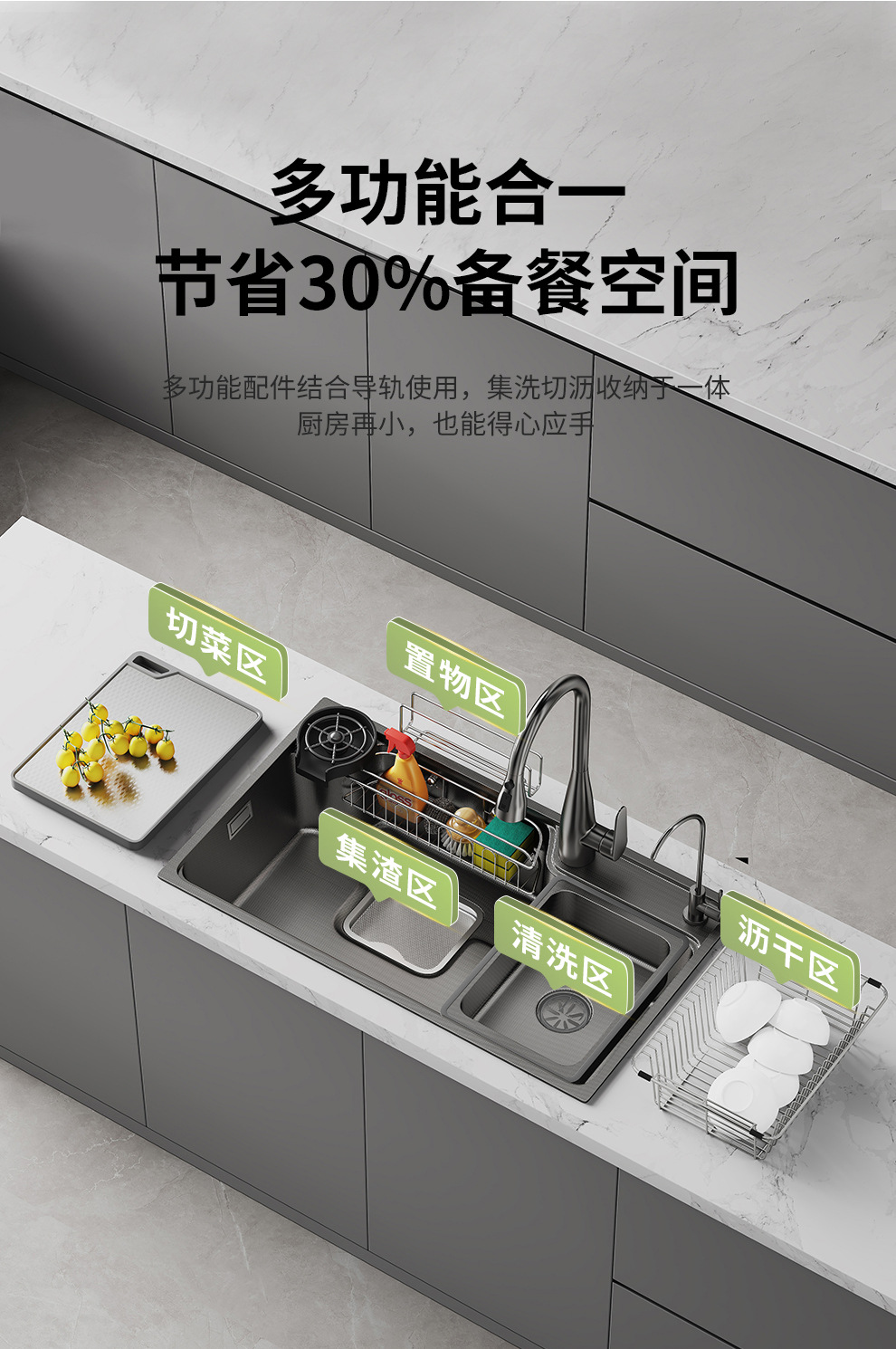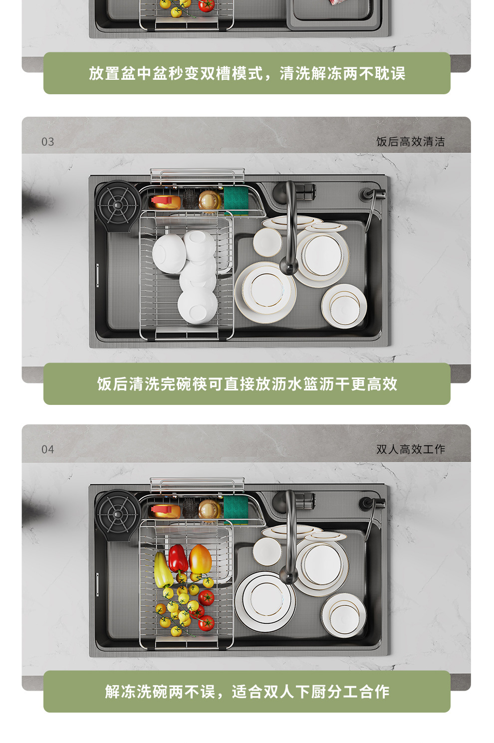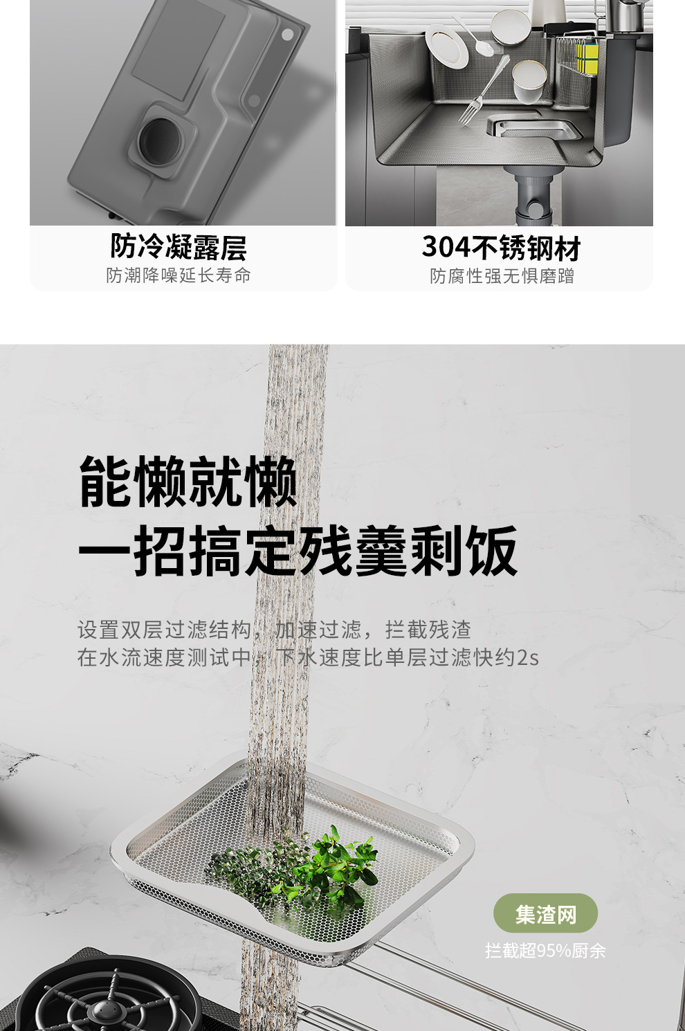 跨境 水槽304不锈钢水池 家用洗碗洗菜手池一体柜厨房水槽大单槽