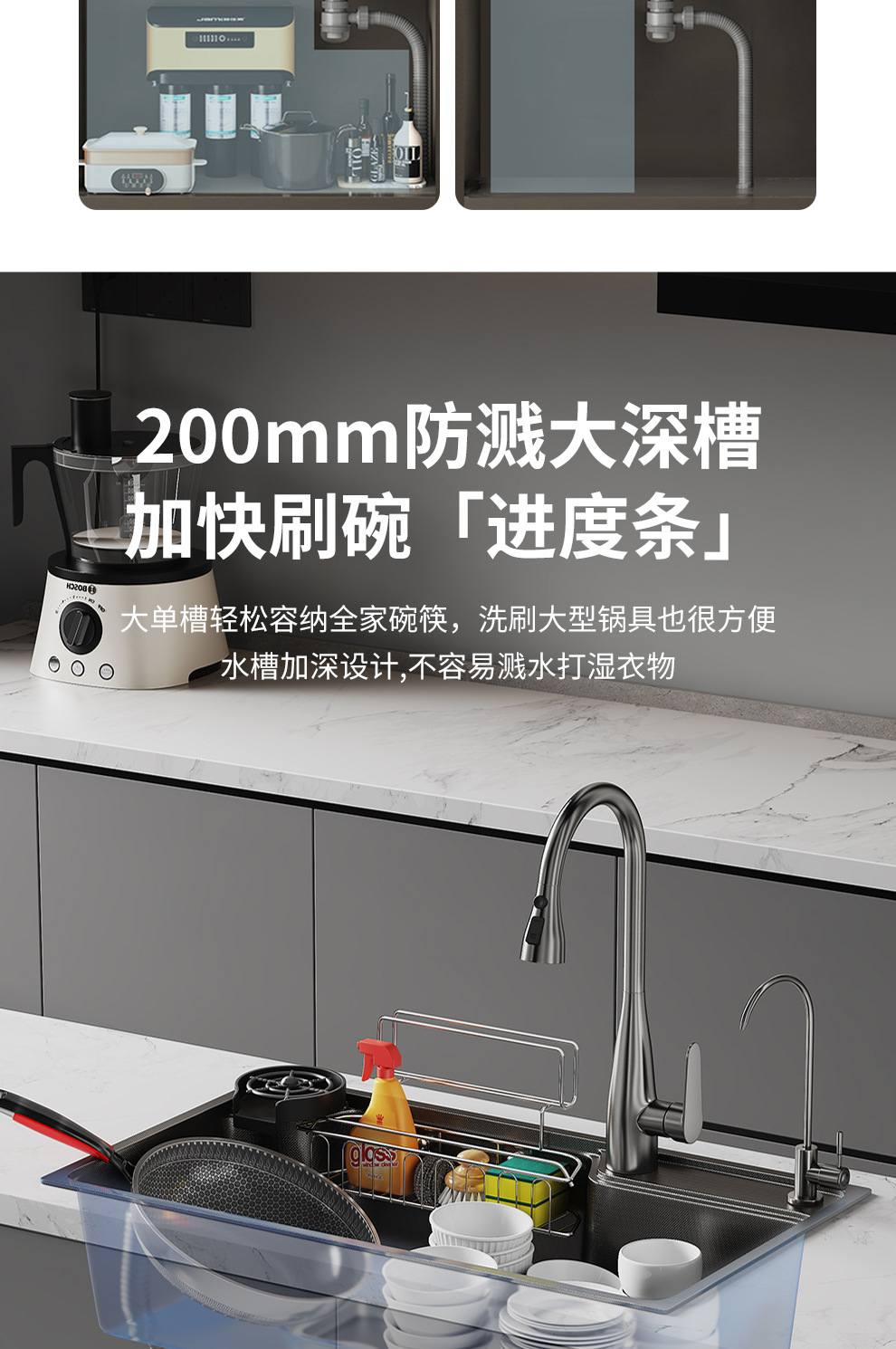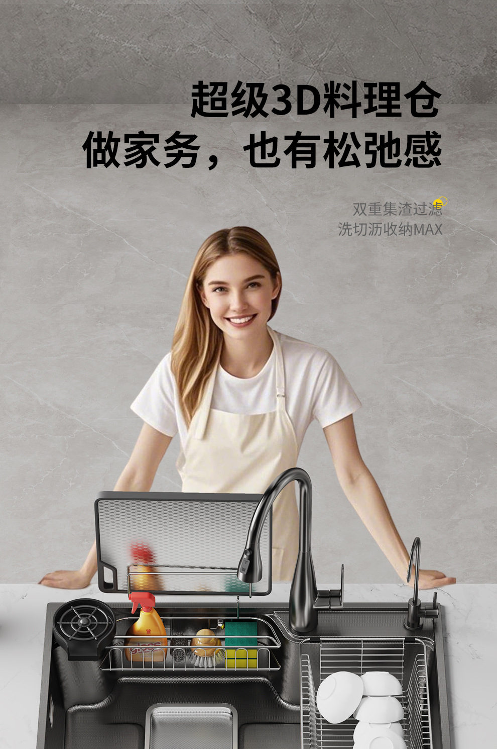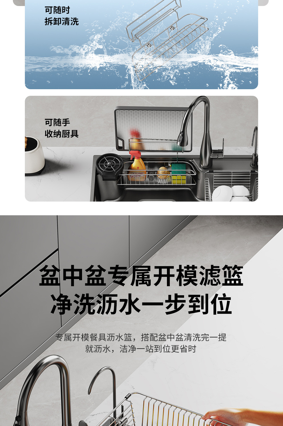 跨境 水槽304不锈钢水池 家用洗碗洗菜手池一体柜厨房水槽大单槽