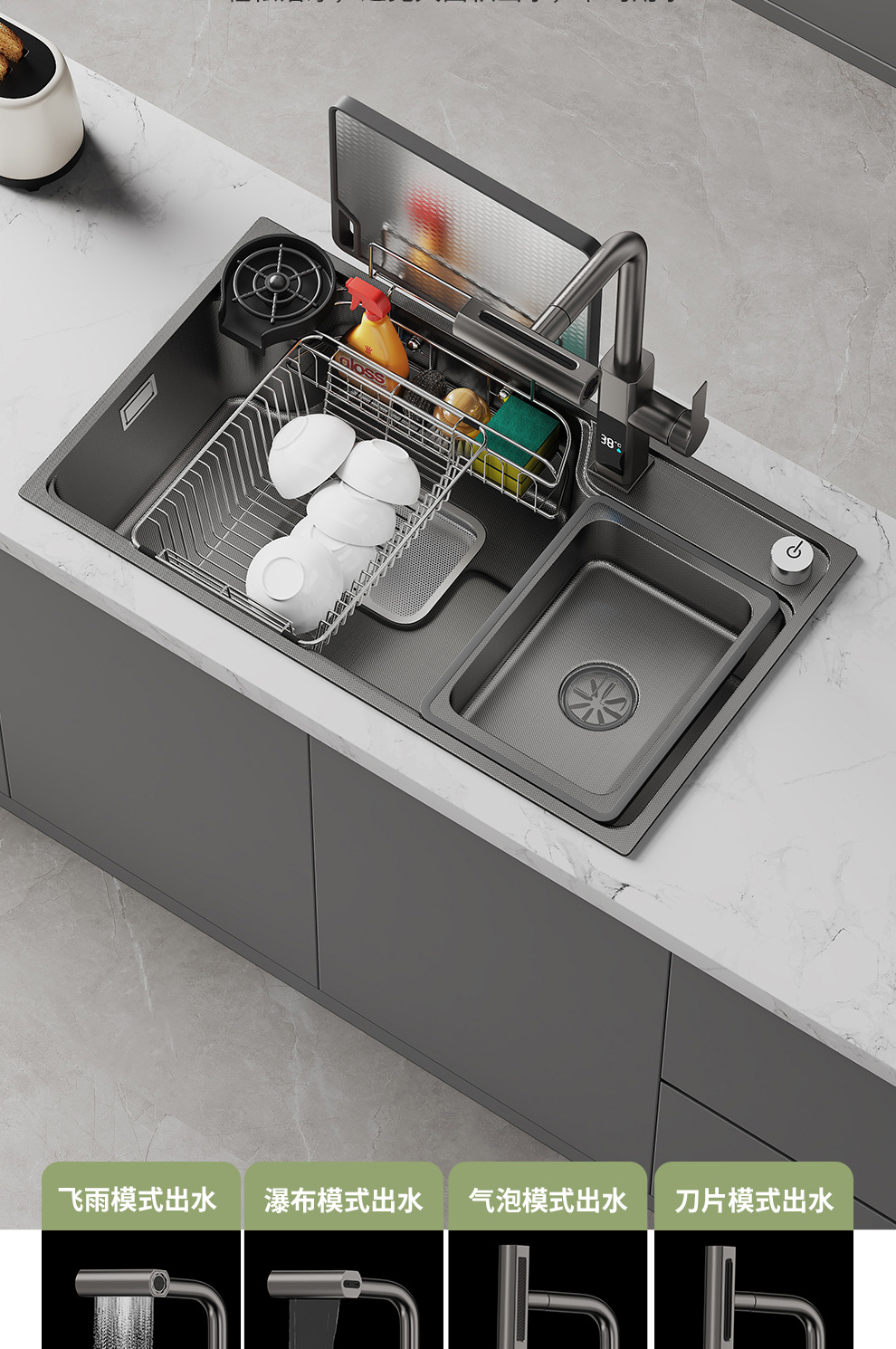 軽豪華単槽デジタル表示ステンレス水槽埋め込み式sus304カップ洗浄器家庭用キッチン洗浄池セット