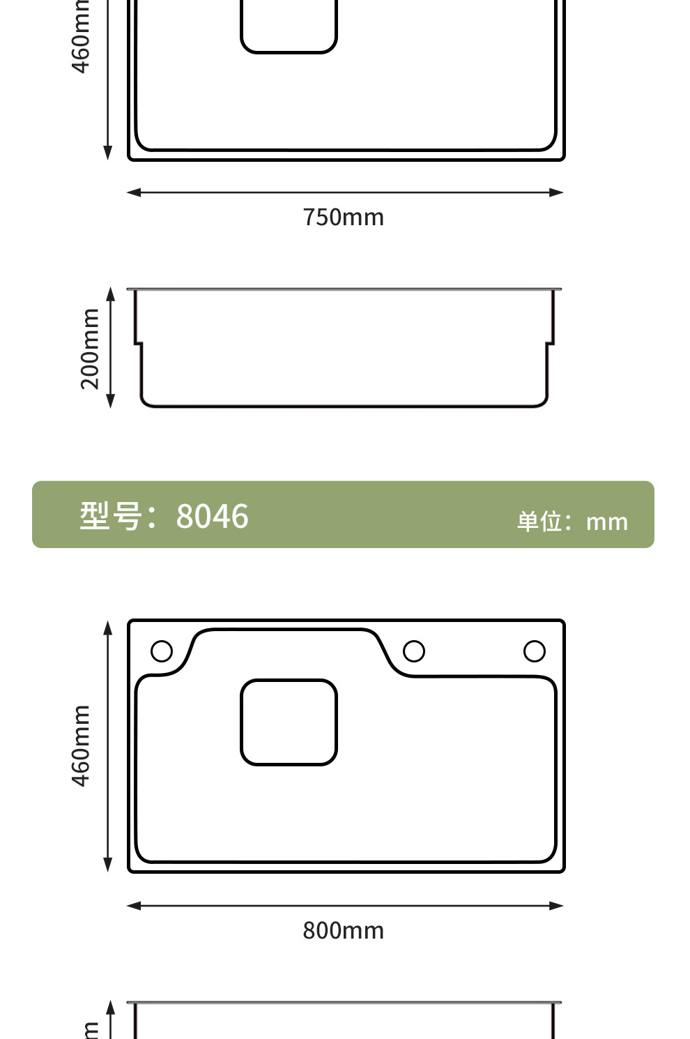 全体の寸法 長さ800mm、幅460mm、高さ200mm