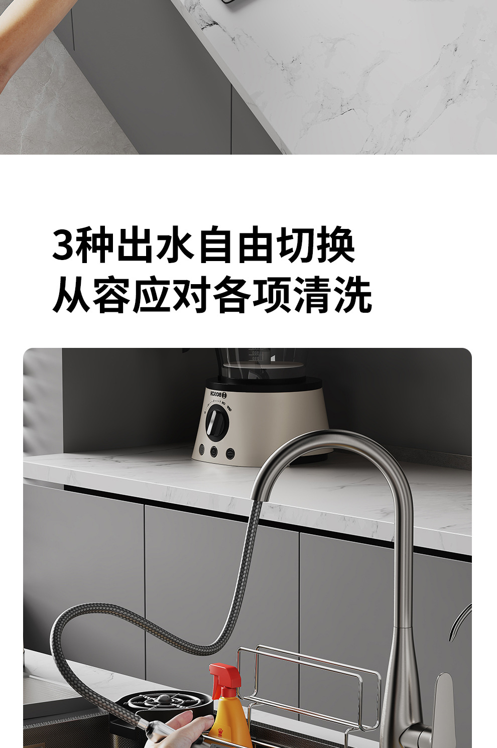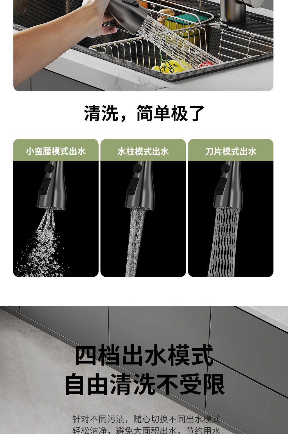 英爵の全銅の銃の灰色の台所は蛇口の3モードの大きい衝撃力を引き出して野菜のたらいの水槽の蛇口を剃ります。